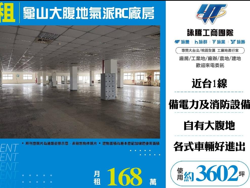 【租】龜山大腹地氣派RC廠房FY07109