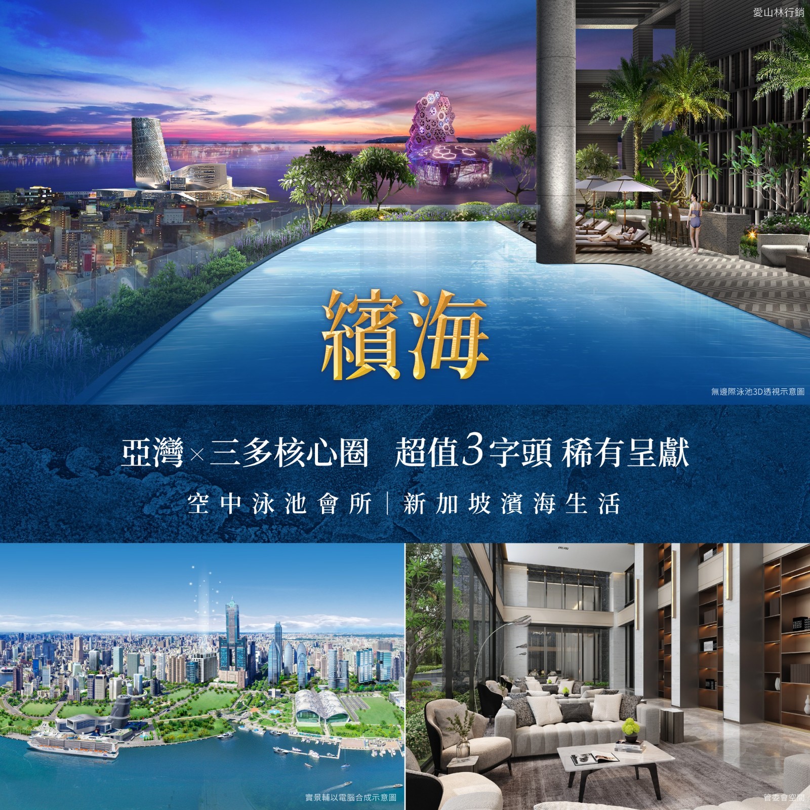 「繽海」位於高雄市苓雅區三多四路與自強三路口,由都山林開發股份有限公司投資興建,甲天下營造股份有限公司營造,許堅倚建築師事務所建築設計,基地面積1117.73坪、建蔽率69.98%、公設35~36%,樓層規劃為3棟地上15層,地下5層建築,共有552戶住家,21戶店面,格局坪數規劃三房35~42坪、1+1房18坪、2+1房28坪。