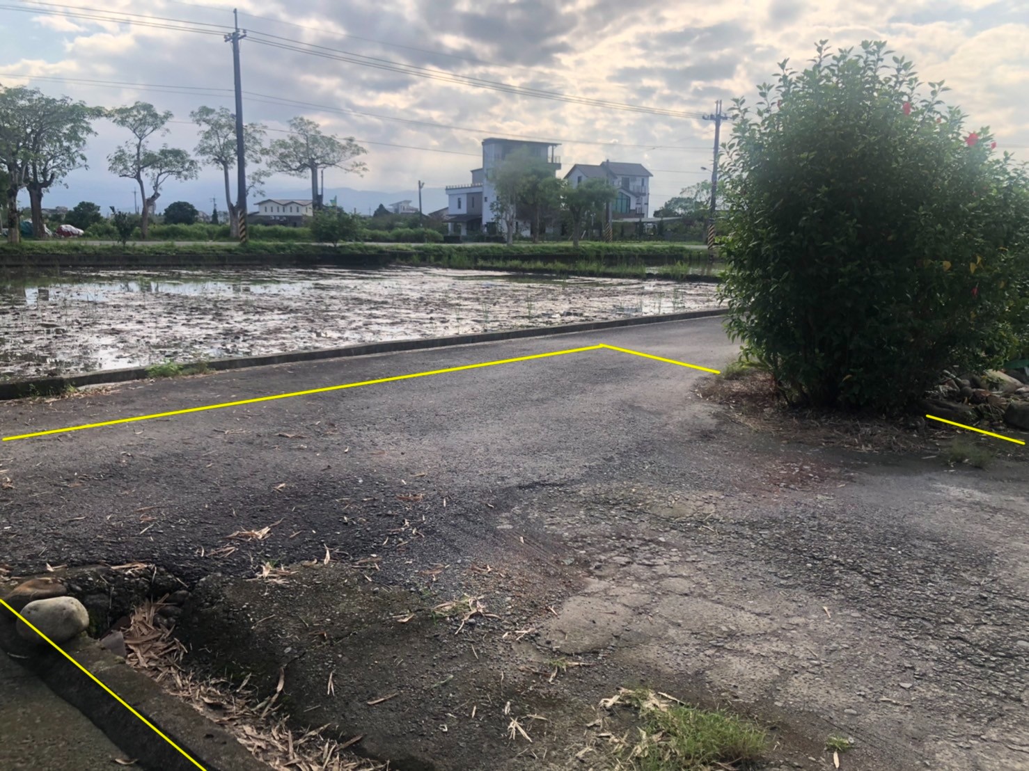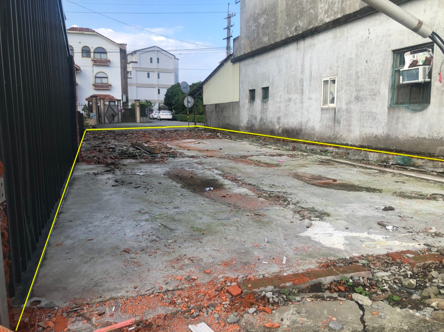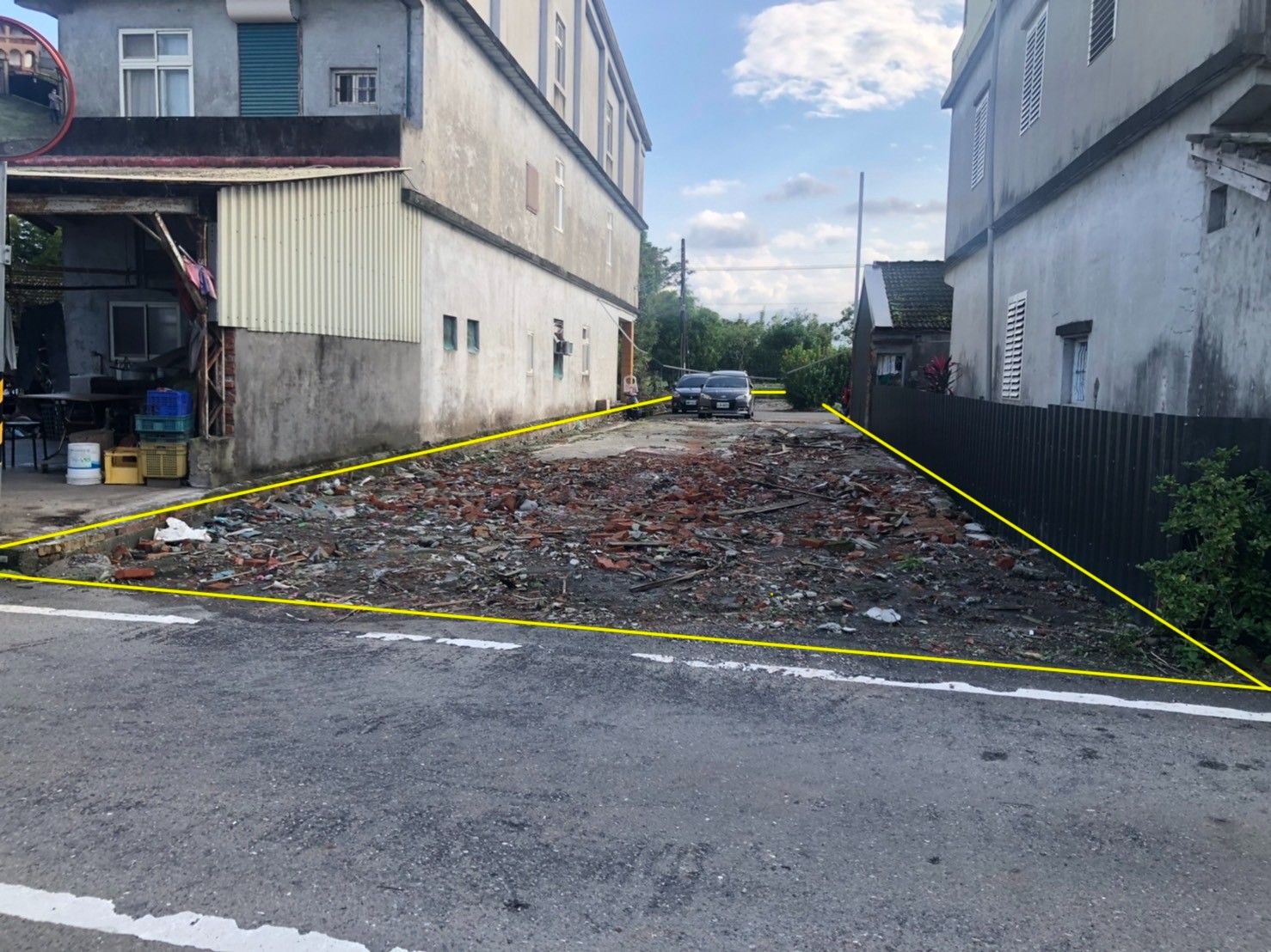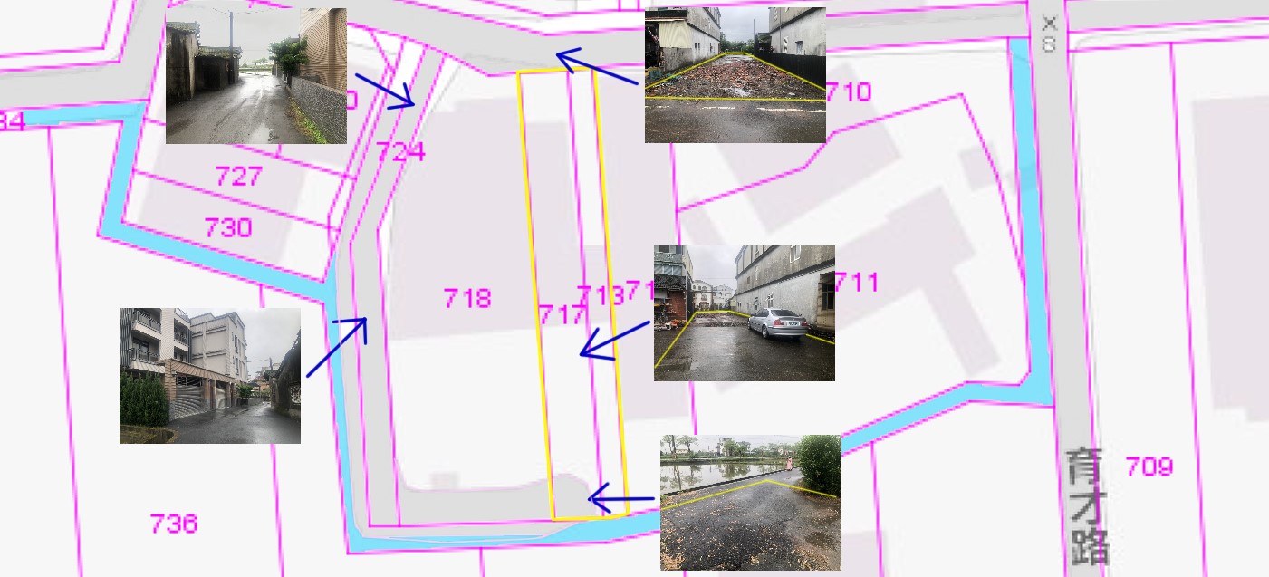 基地現況--"前"臨路.."後"也可進出..有臨 排水..查 無法定空地比..沒有地上物..符合 興建 房屋條件