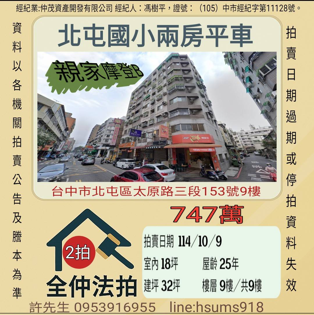 經紀人:馮樹平,證號:( 105)中市經紀字第 01728 號。