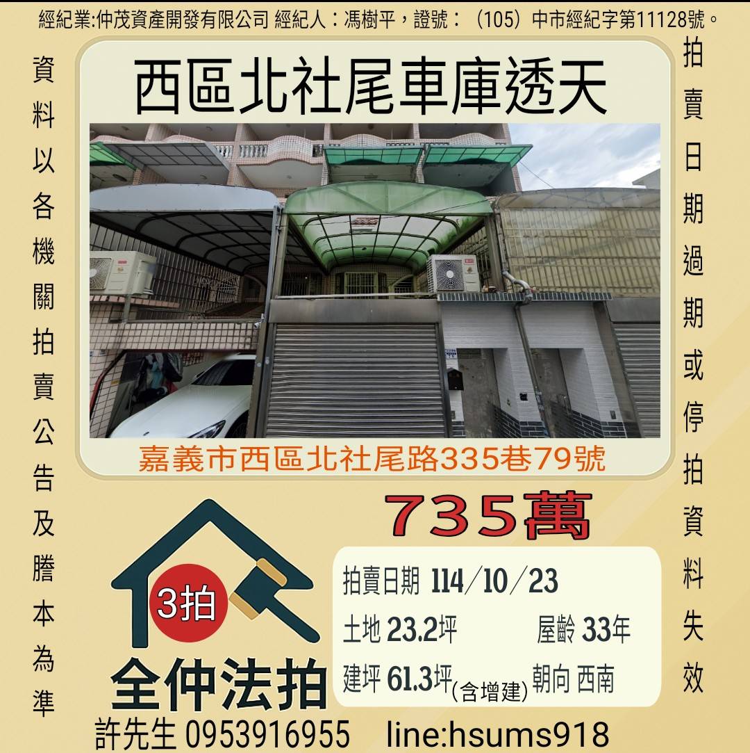 經紀人:馮樹平,證號:( 105)中市經紀字第 01728 號。