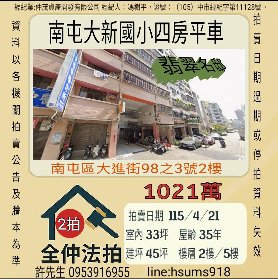 經紀人:馮樹平,證號:(105)中市經紀字第11128號。