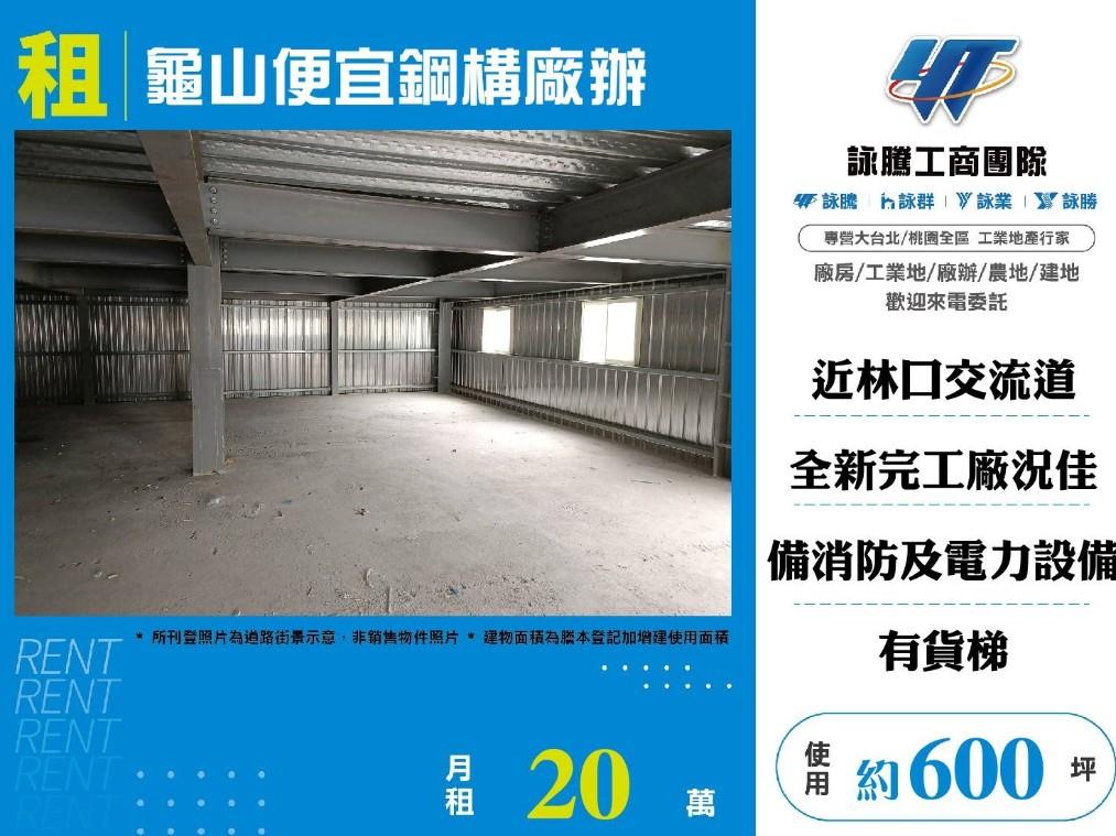 【租】龜山便宜鋼構廠辦FY07625