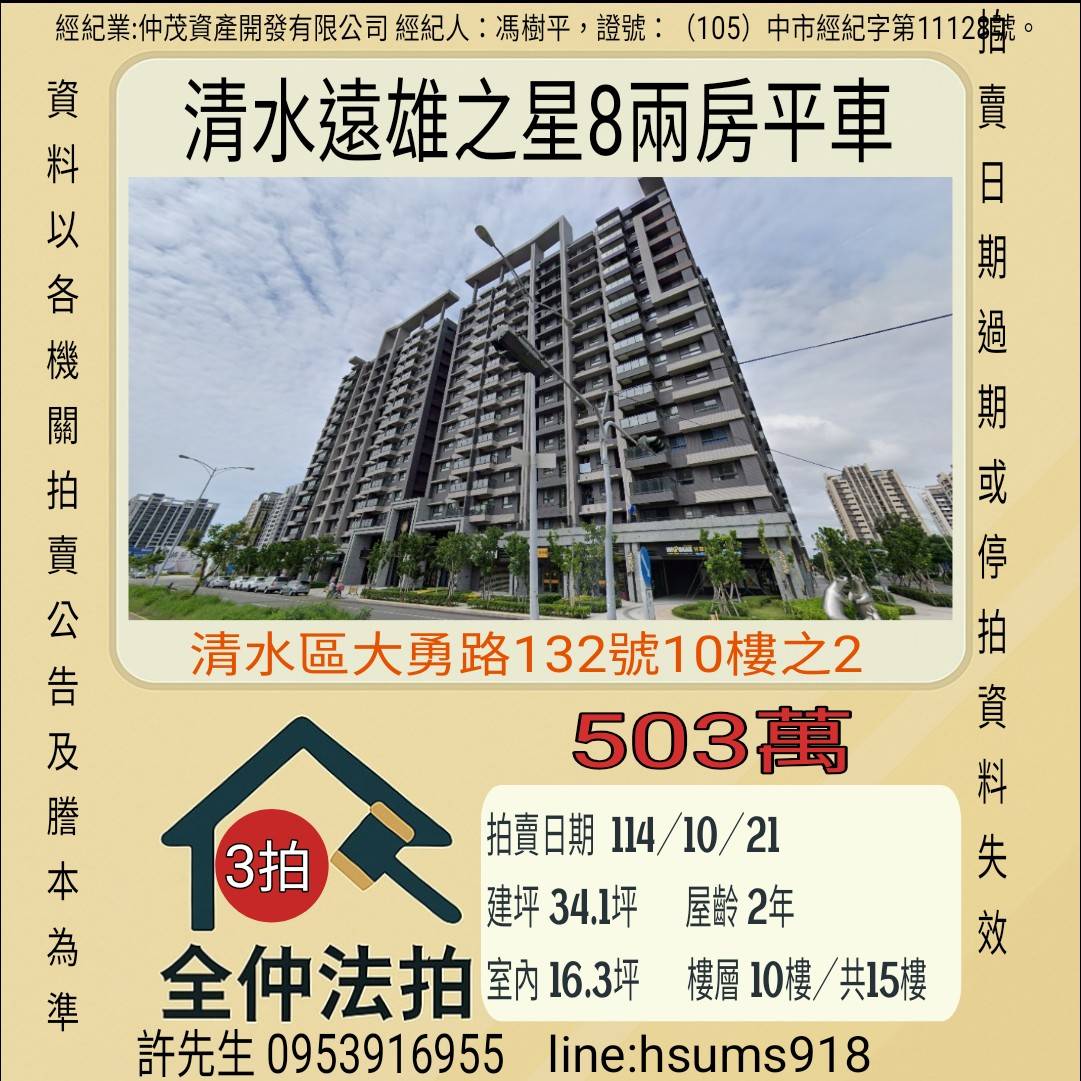 清水遠雄之星8兩房平車-10/21開標