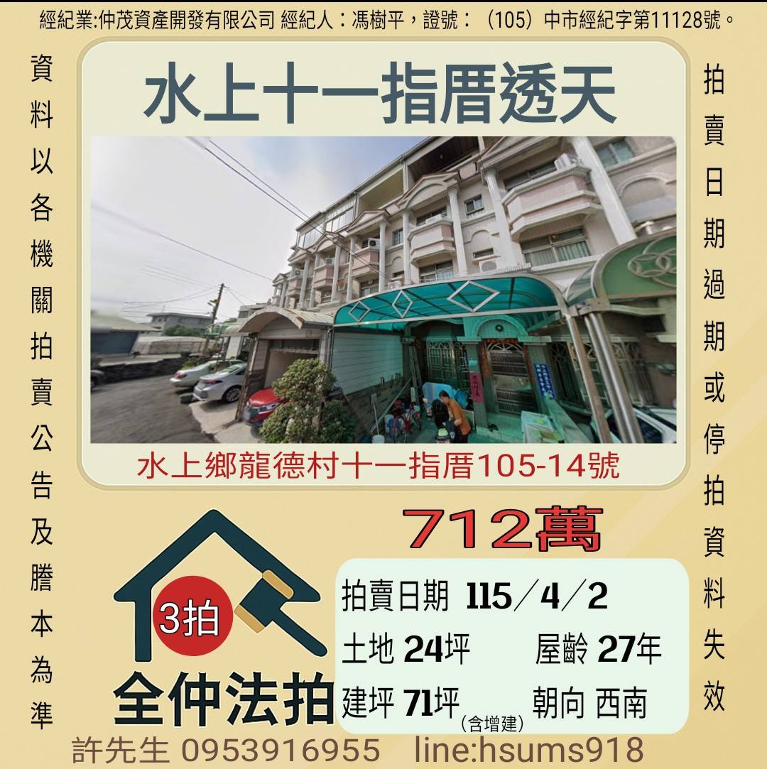 經紀人:馮樹平,證號:(105)中市經紀字第11128號。