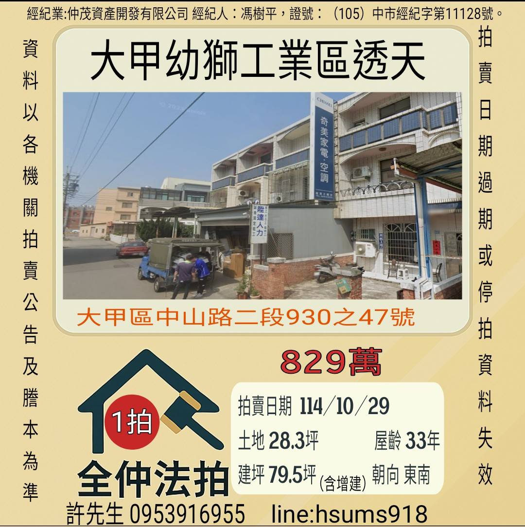 經紀人:馮樹平,證號:(105)中市經紀字第11128號。