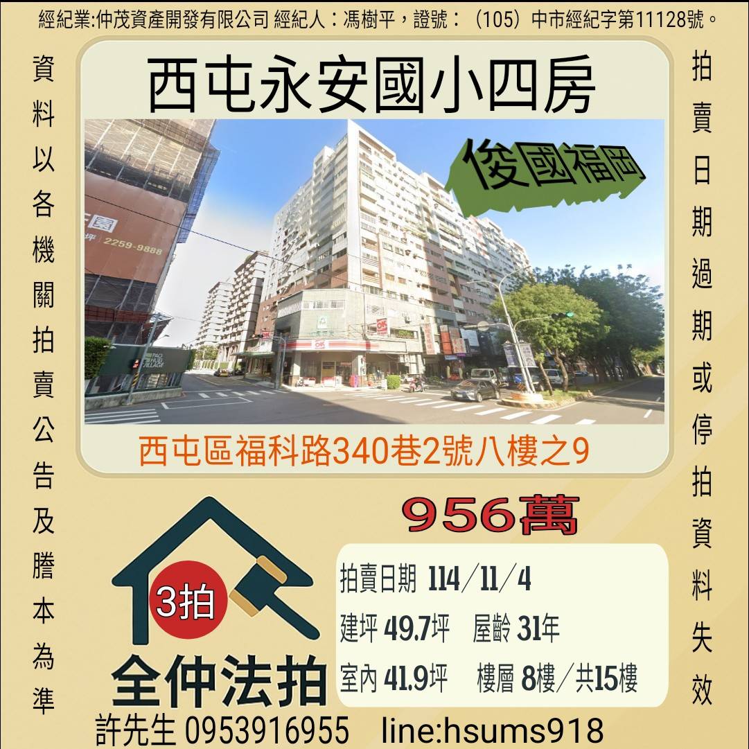 經紀人:馮樹平,證號:(105)中市經紀字第11128號。