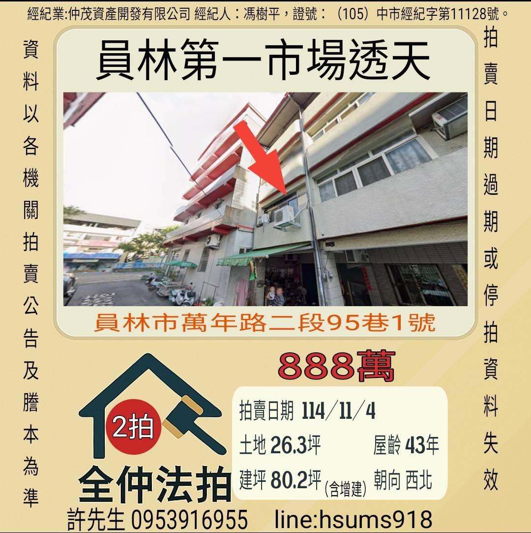 經紀人:馮樹平,證號:( 105)中市經紀字第 01728 號。