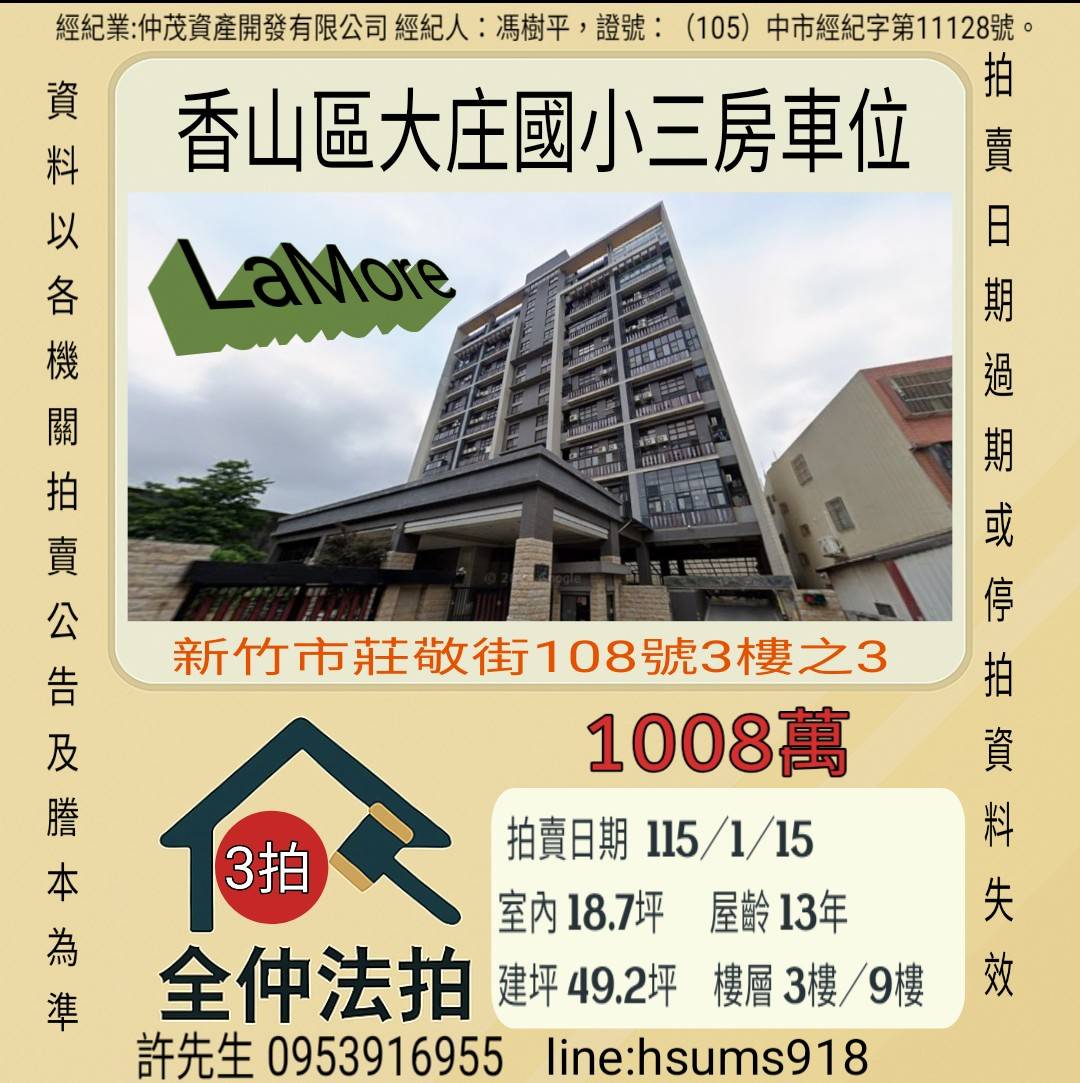 經紀人:馮樹平,證號:(105)中市經紀字第11128號。