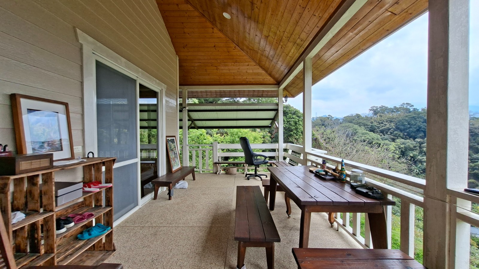 5.步上二樓露臺,視野瞬間開闊明亮。南庄溪蜿蜒而過,田野阡陌綿延無際,遠方群山青翠相映,天地之間宛如展開一幅清新動人的山水畫卷。