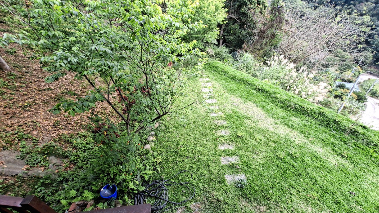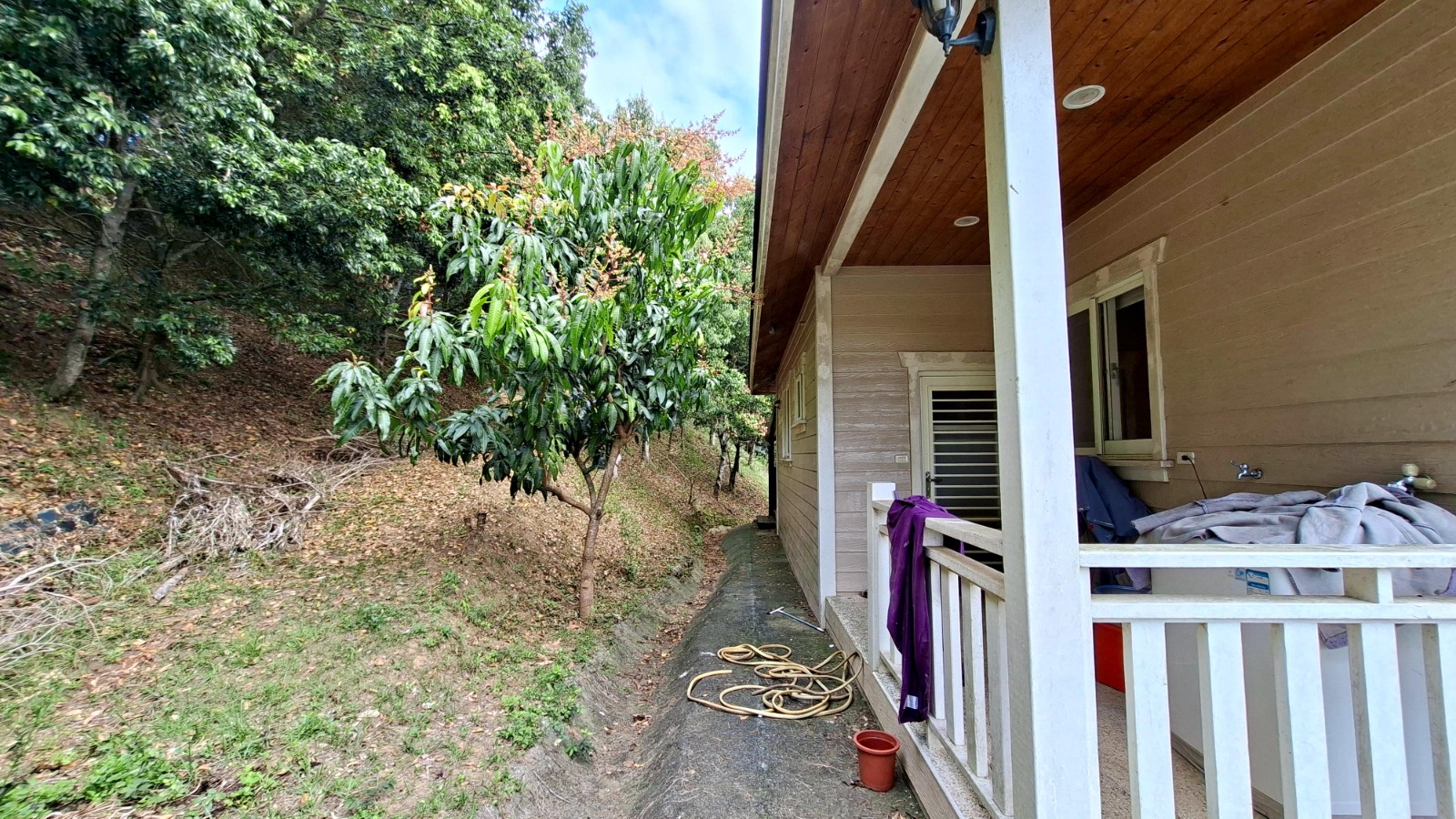 3.土地為山坡地地形,現況大致整理為約5階平台,地勢層層分明,具多元規劃空間。園區內除部分景觀植物及少量芒果樹外,其餘多為原始林相,保留自然生態,山林環繞、環境清幽,非常適合規劃休閒度假或打造私人山林天地。