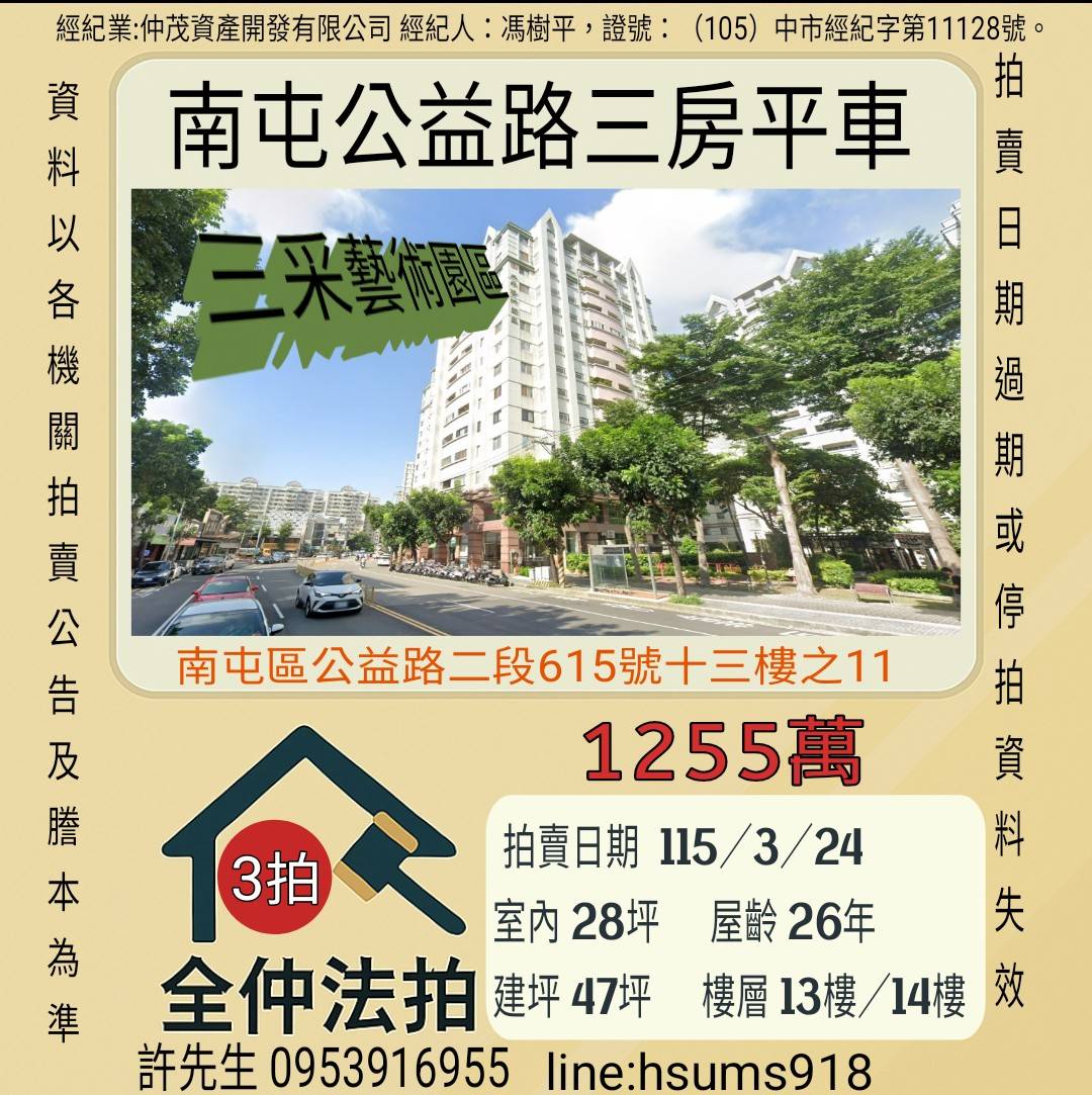 經紀人:馮樹平,證號:(105)中市經紀字第11128號。
