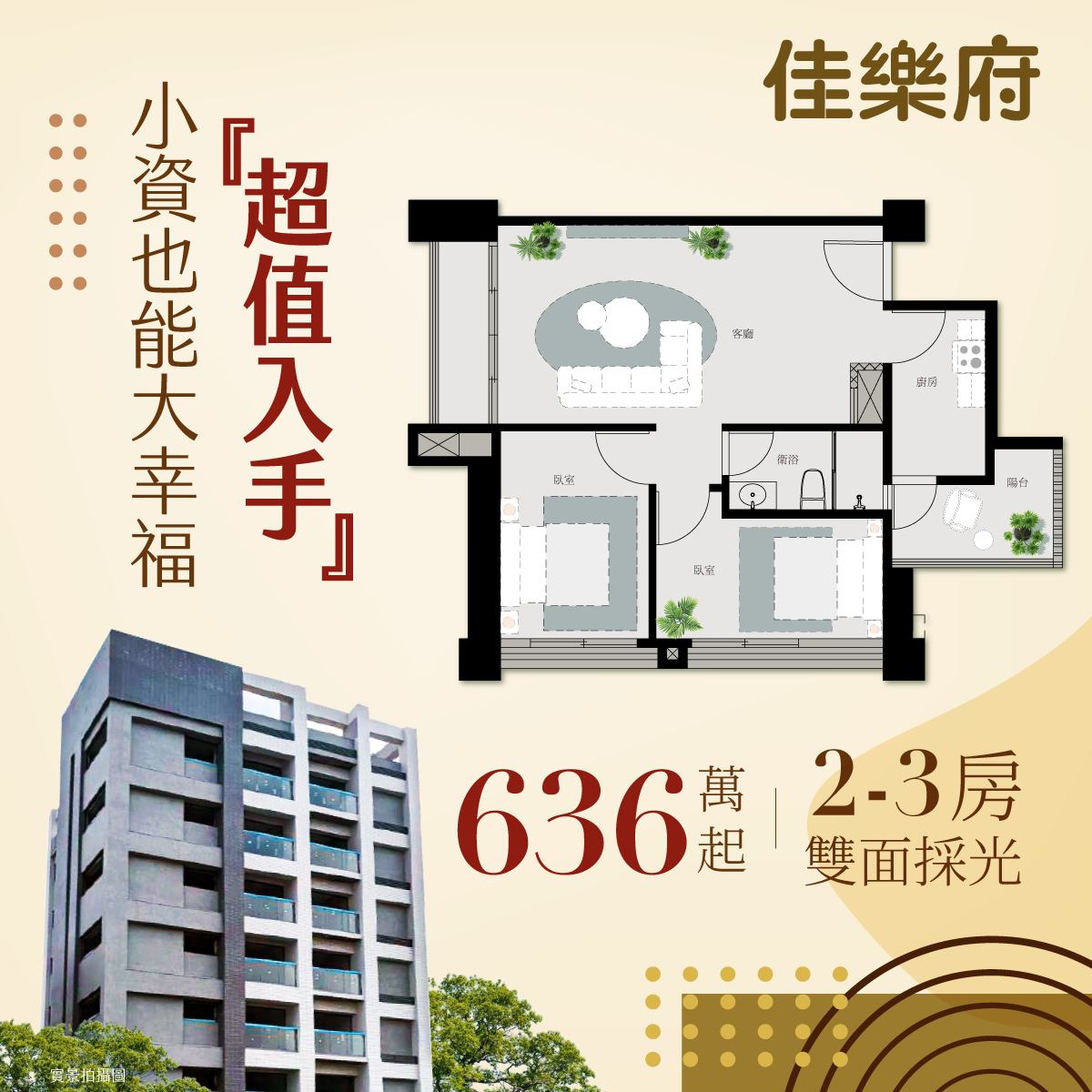 2-3房⎜636萬起⎜雙面採光⎜低公設比