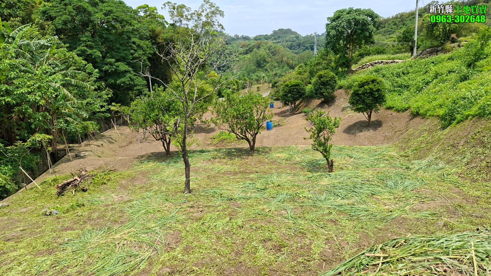 後側區域 位於道路下方,地勢坡度較大,適合規劃整理為果樹區或景觀樹種植,層次豐富、綠意盎然。