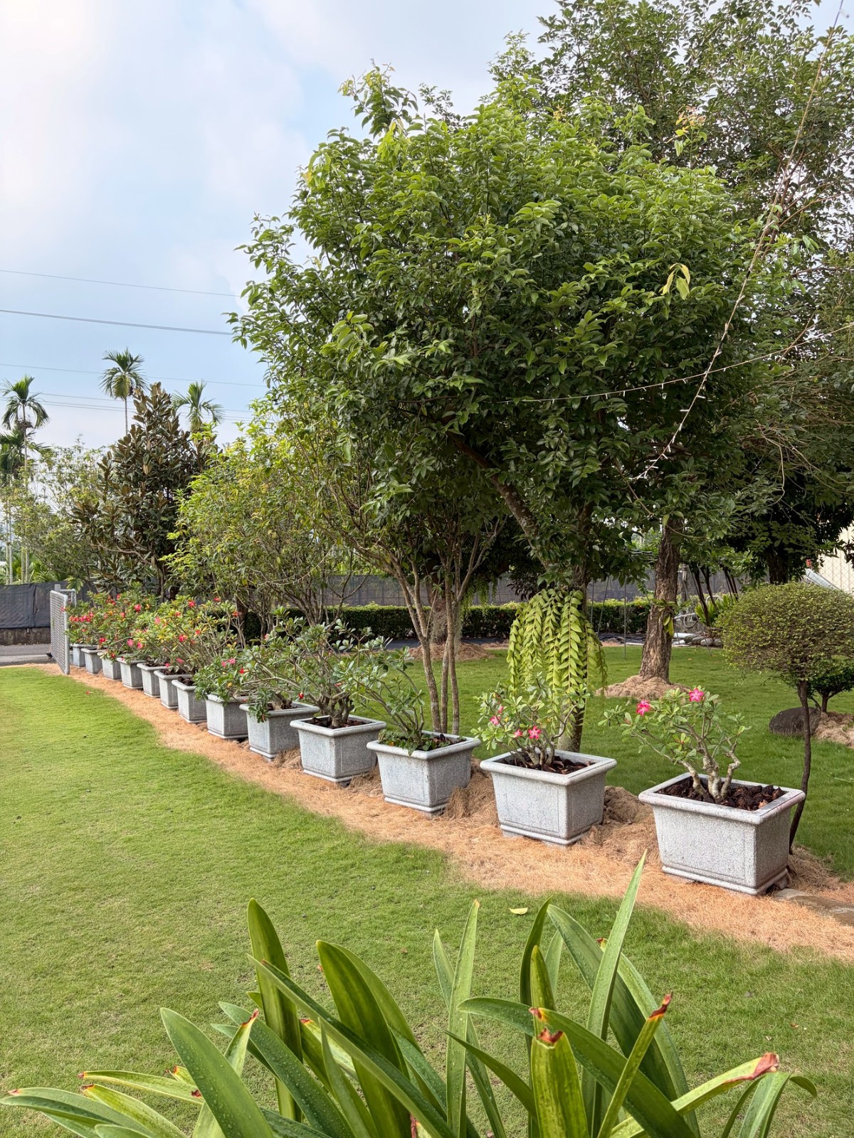 並有 花木二十餘種:桂花、風鈴木、九重葛、茶花、肉桂、百合、玉蘭、黃金扁柏、樟樹、陰香、黑板樹、澳洲茶樹、紫藤木、長紅木、紫薇、醉嬌娘、瓶刷子、荷花等。