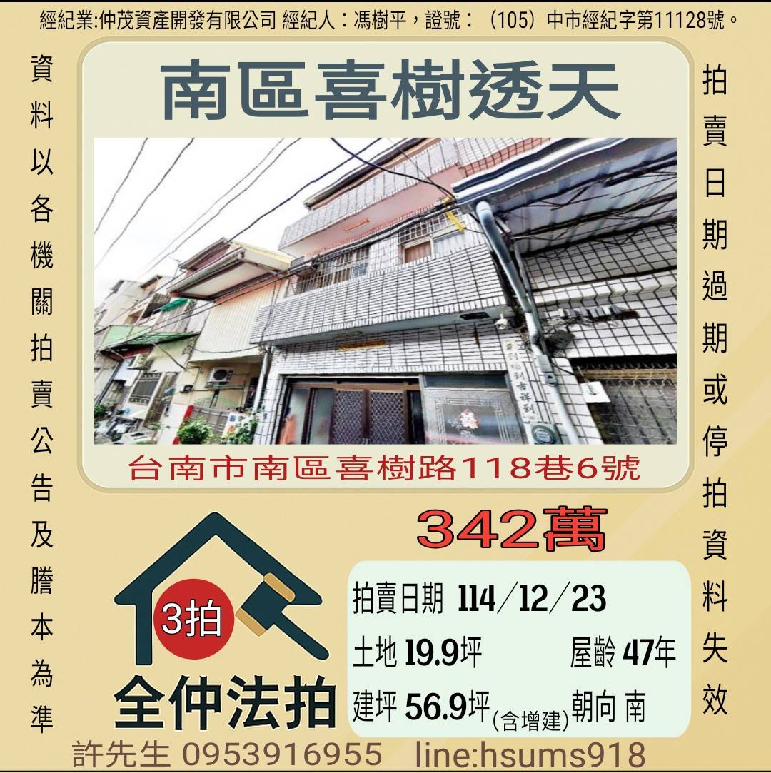 經紀人:馮樹平,證號:(105)中市經紀字第11128號。