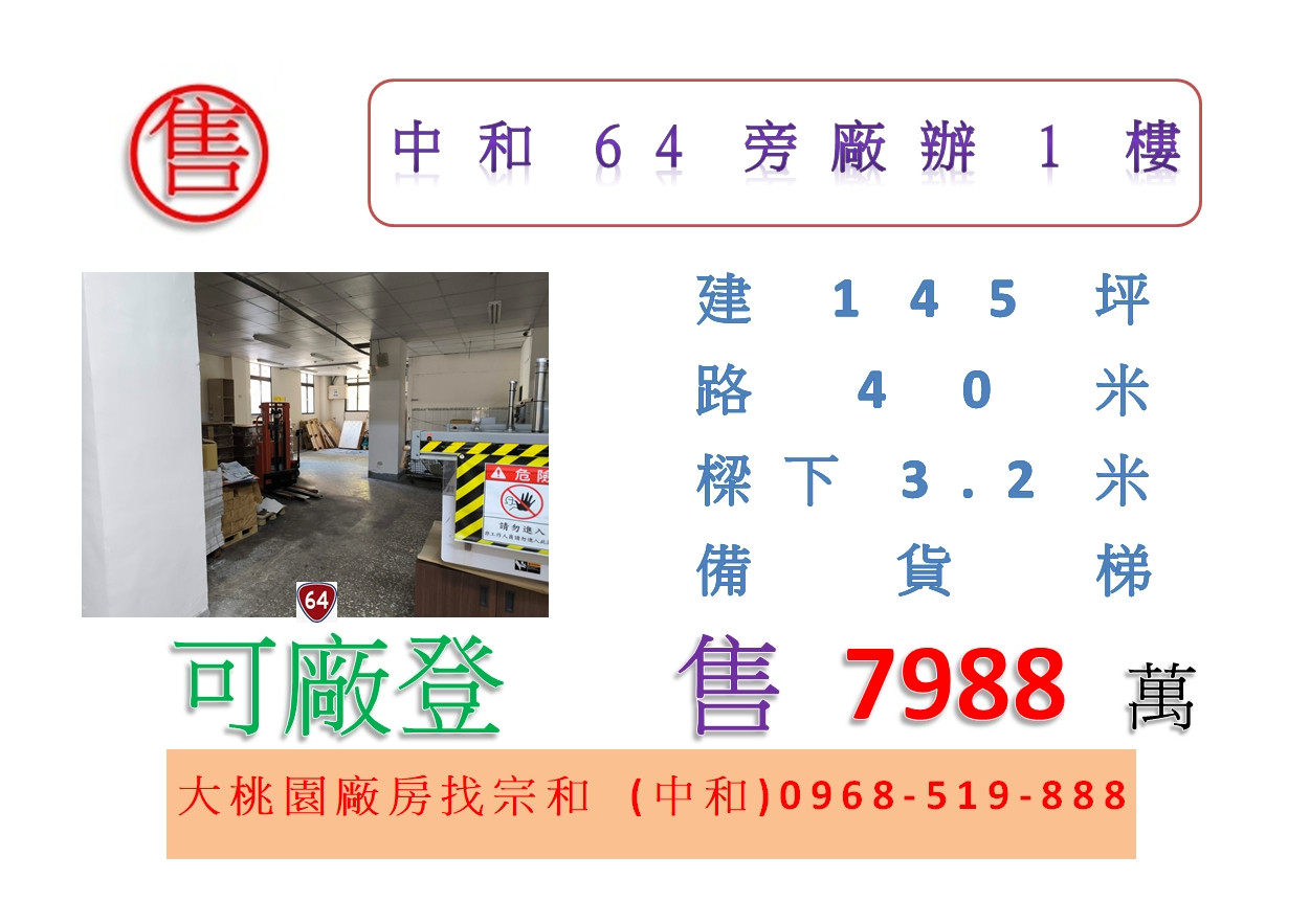 案名:中和64旁廠辦1樓