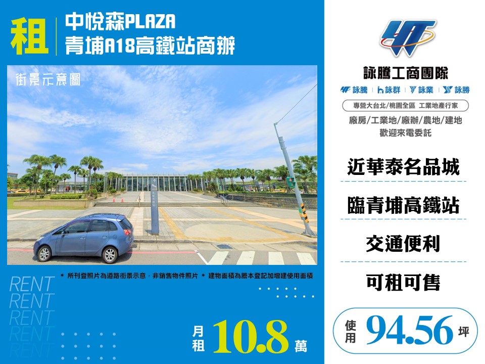 案名: 中悅森PLAZA青埔A18高鐵站商辦