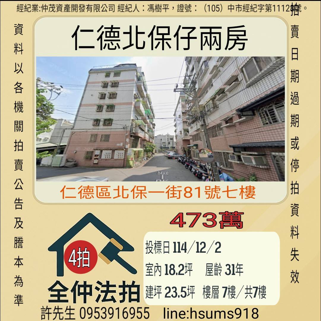 經紀人:馮樹平,證號:(105)中市經紀字第11128號。