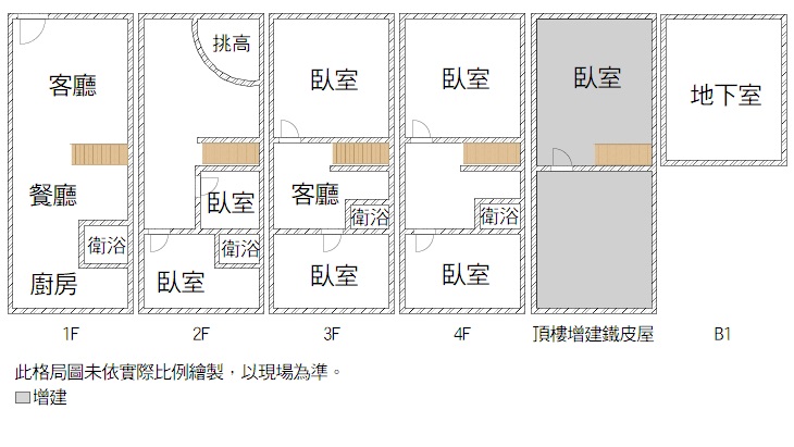 2.頂樓增建鐵皮屋、1樓增建沿著加蓋、增建1~4樓後方。