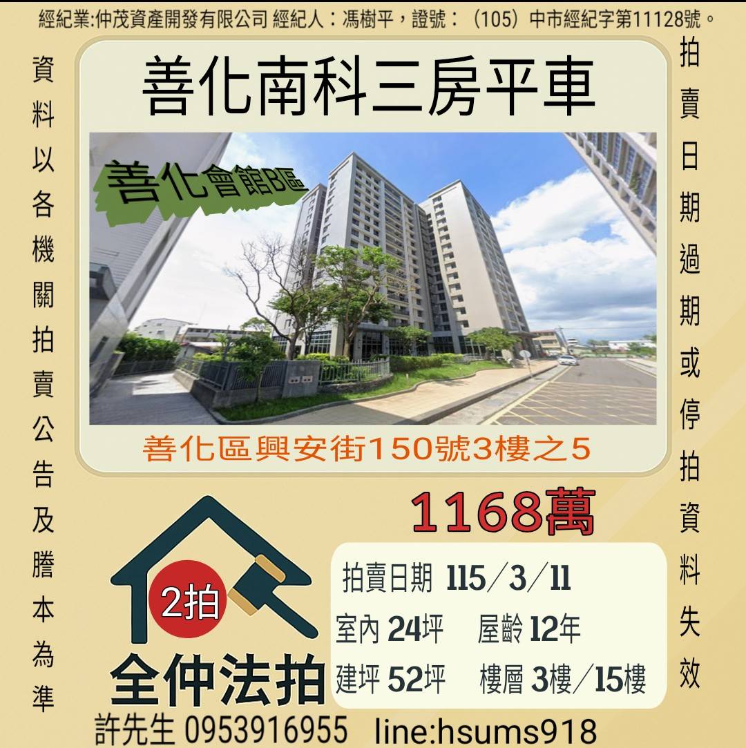 經紀人:馮樹平,證號:(105)中市經紀字第11128號。