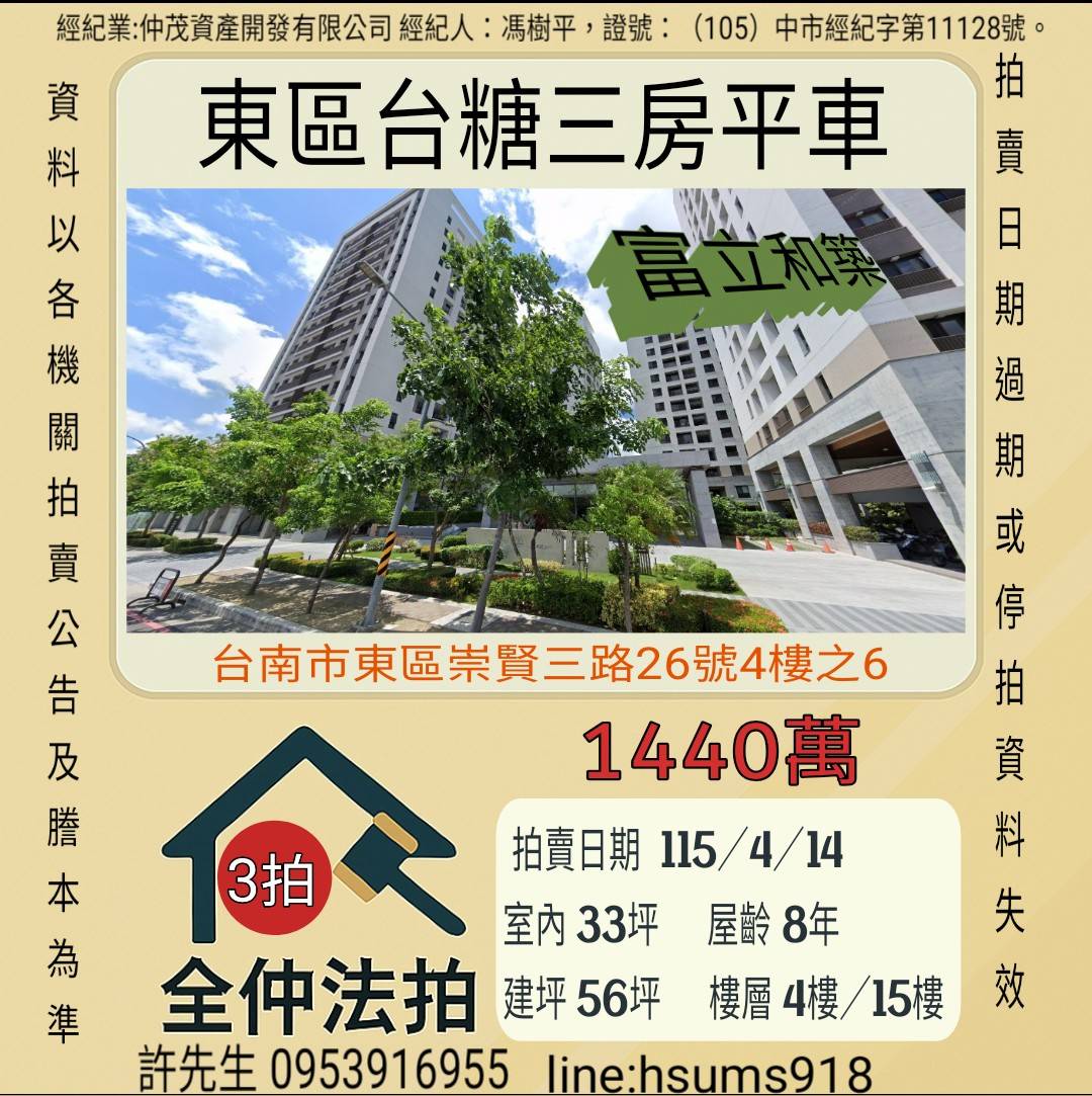 經紀人:馮樹平,證號:( 105)中市經紀字第 01728 號。