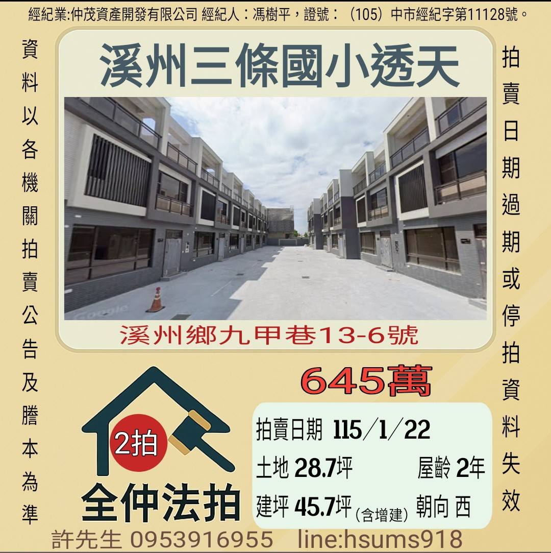 經紀人:馮樹平,證號:(105)中市經紀字第11128號。
