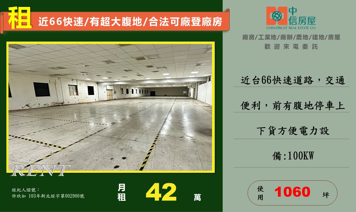🚄方正面寬廠房,臨路寬敞