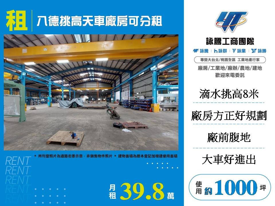 八德挑高天車廠房出租/可分租
