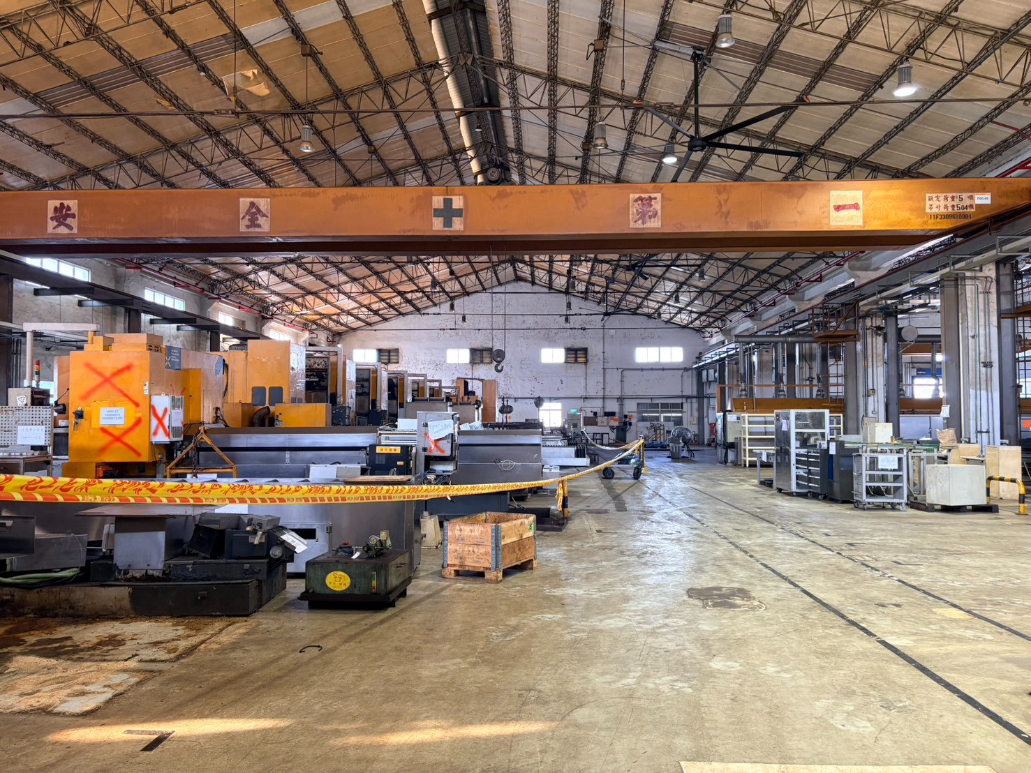 E 棟為鐵皮屋,滴水高度5.2米,天花板高度4.3米,天車一台(承載1噸)。