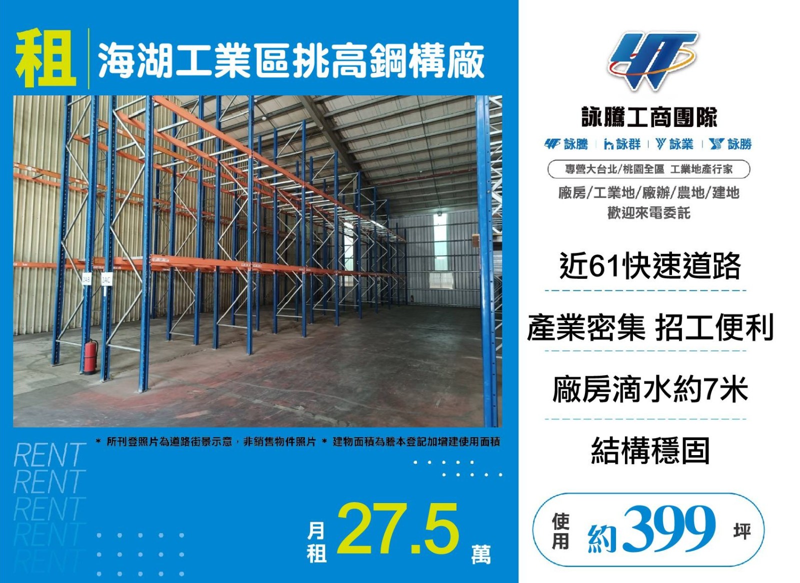專營雙北、桃園、新竹 工業地廠房出租出售