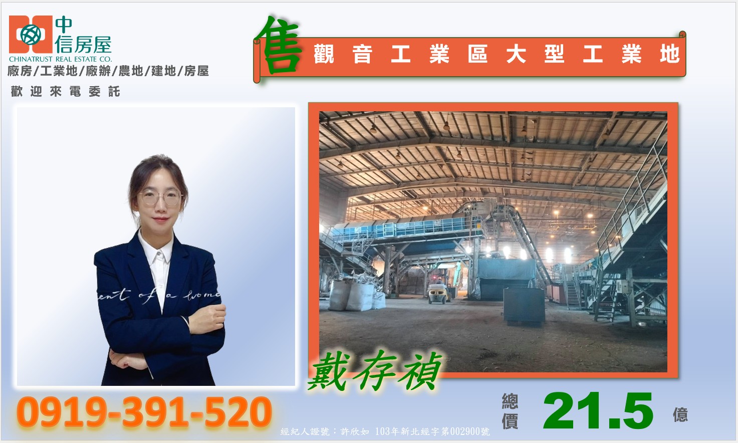 103年新北經字第002900號 經紀人:許欣如