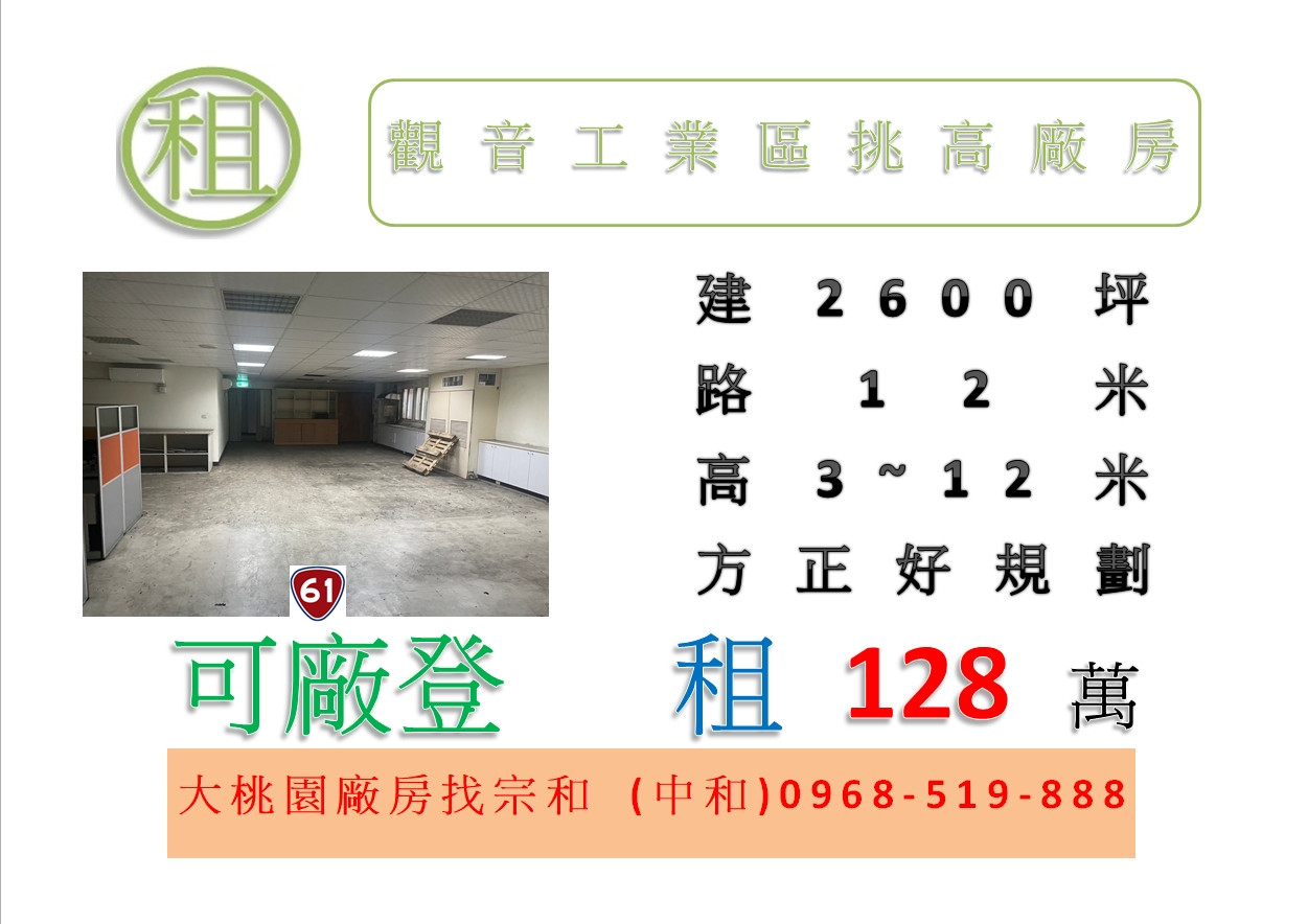 專營桃園工業地廠房出租出售