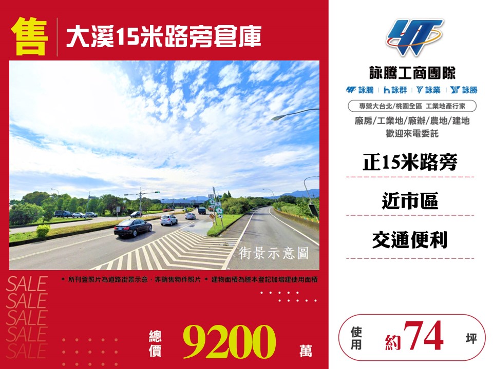 專營桃園大溪~廠房工業地廠辦倉庫!出售/出租