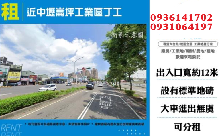 中壢30米大路旁工業地出租