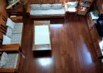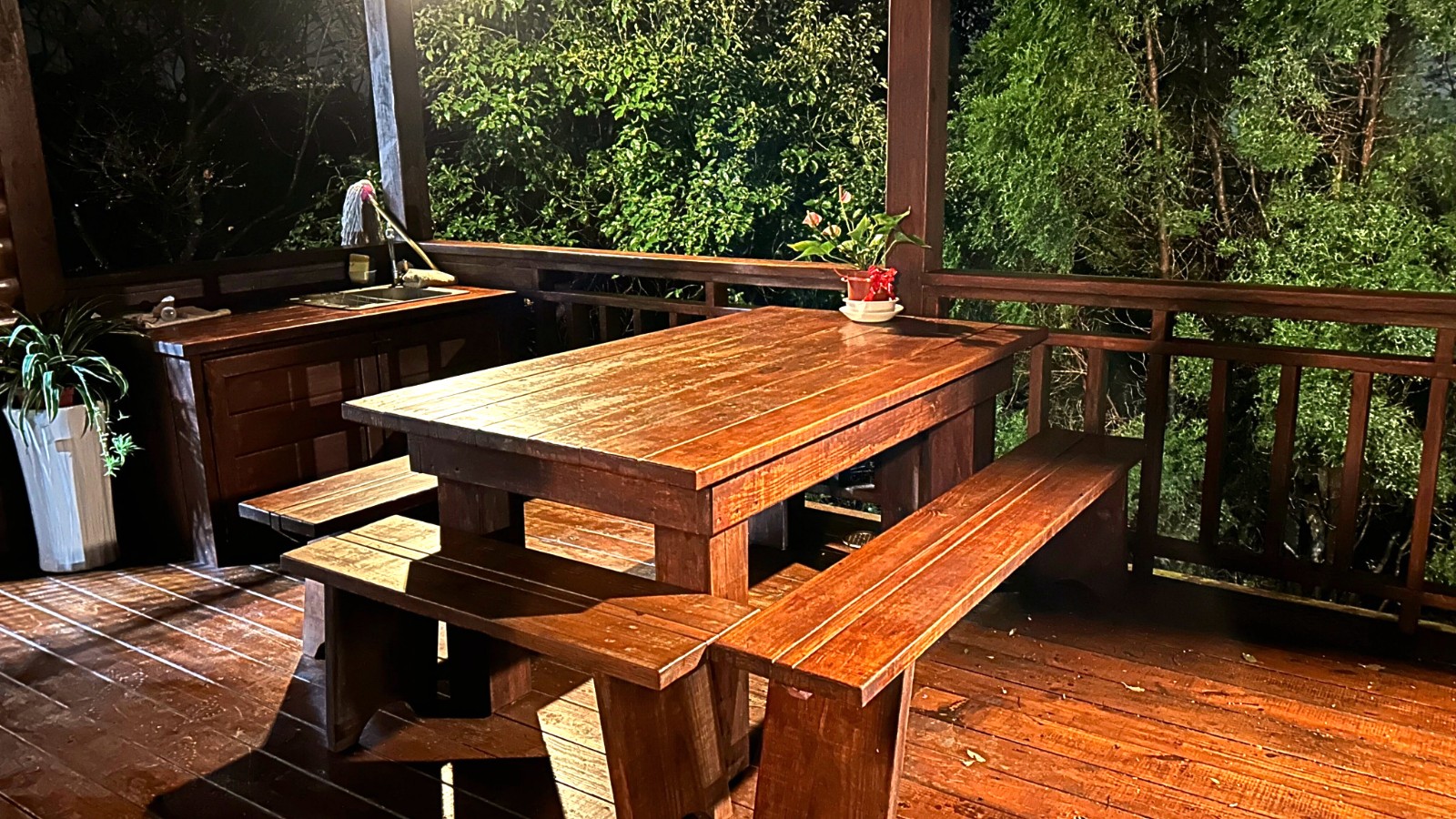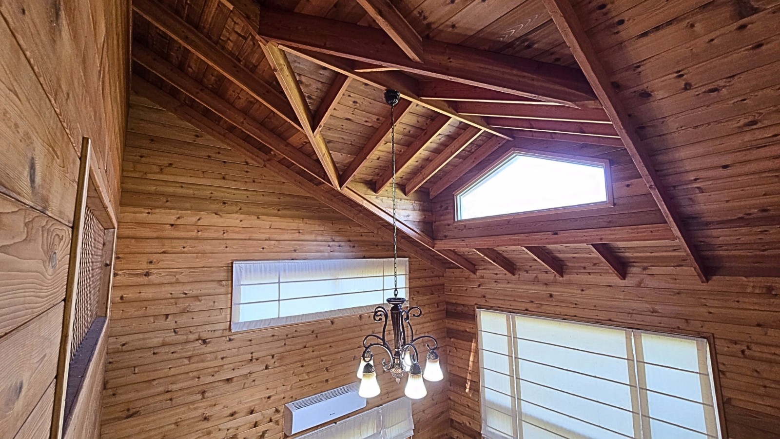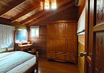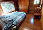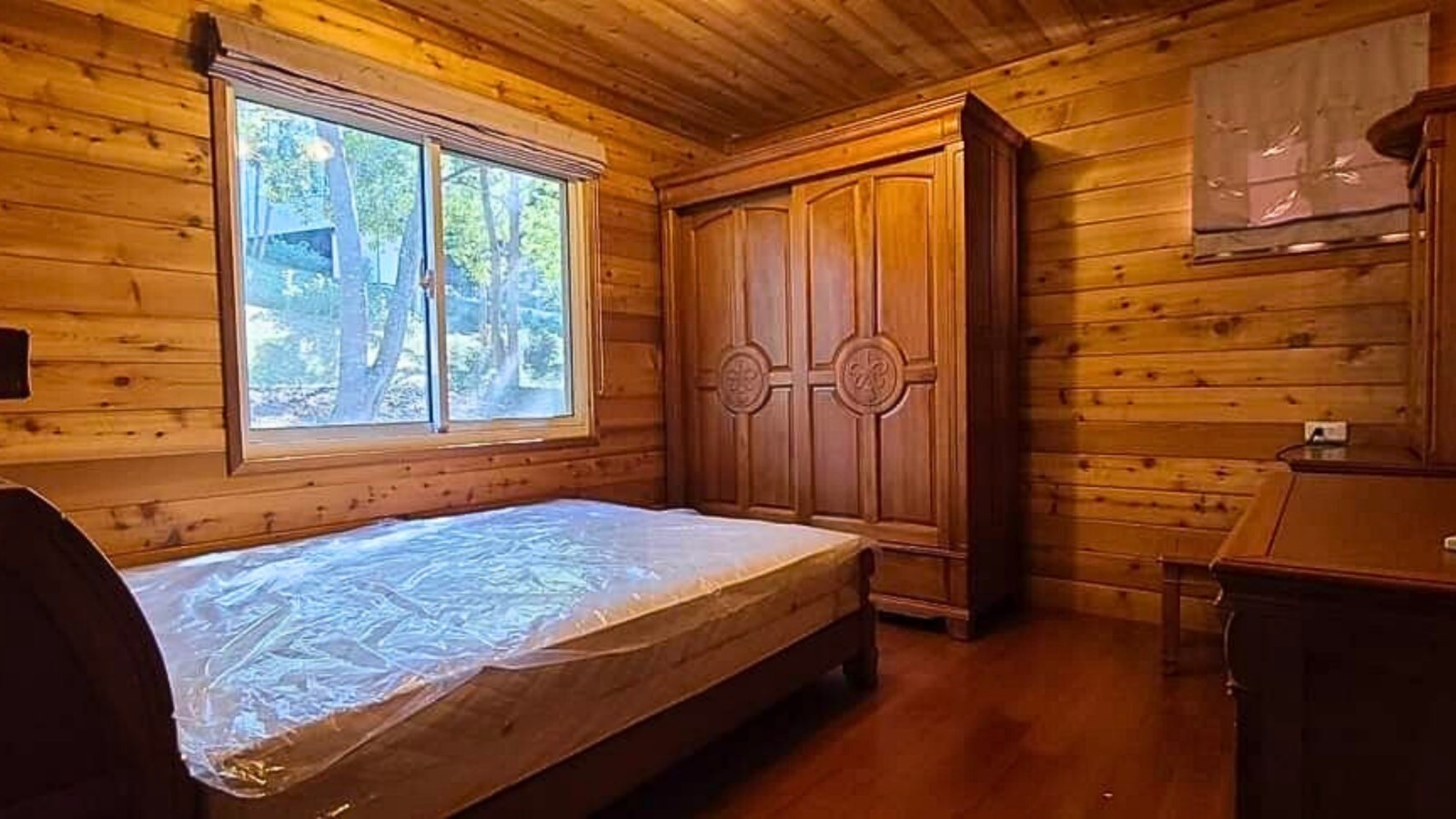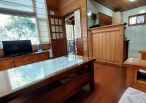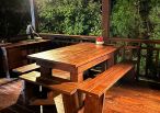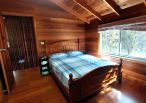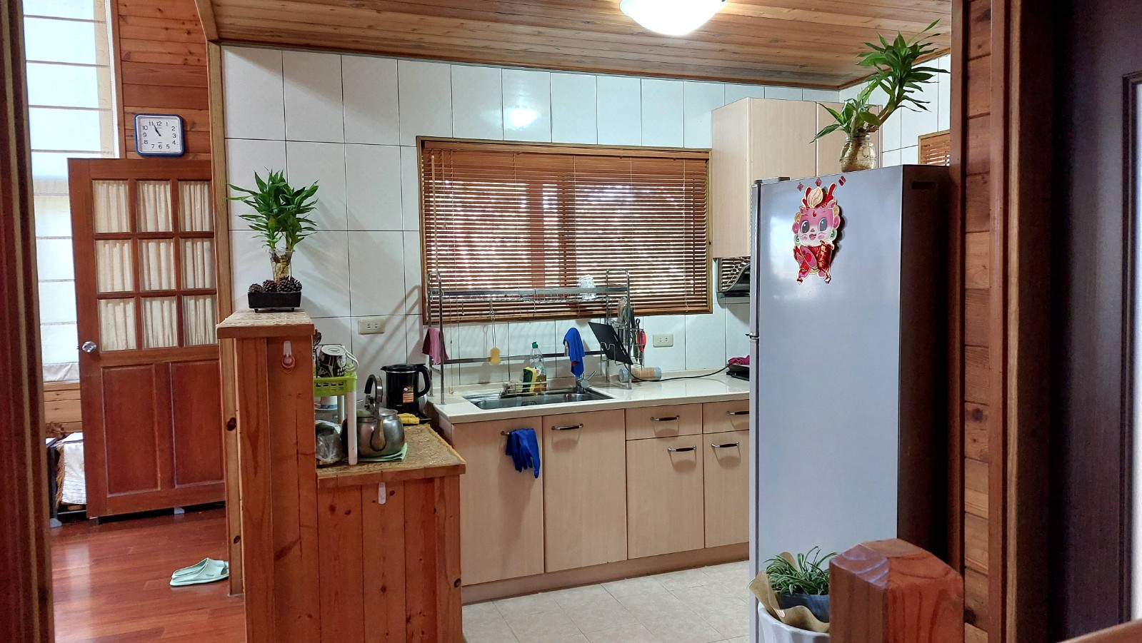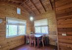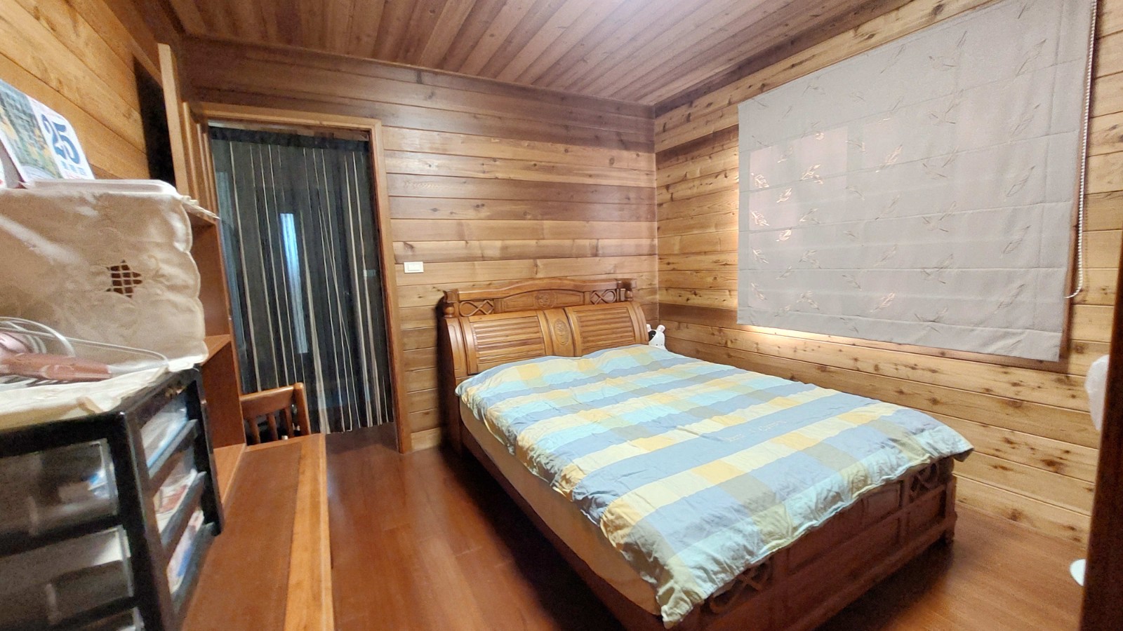 4.木屋屋齡約15年、使用山泉水、桶裝瓦斯、可申請網路。步入室內,濃鬱而溫潤的木頭香氣撲鼻而來。高挑的客廳空間感十足,搭配溫馨的木質傢俱與大片採光窗,陽光灑落在實木地板上,整體氛圍靜謐而療癒,讓人不自覺放慢腳步、放鬆身心