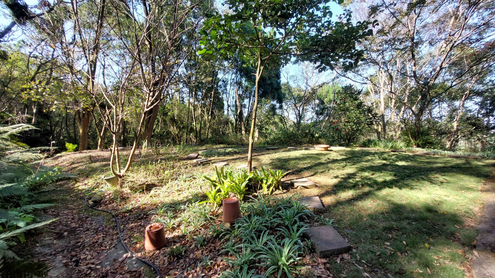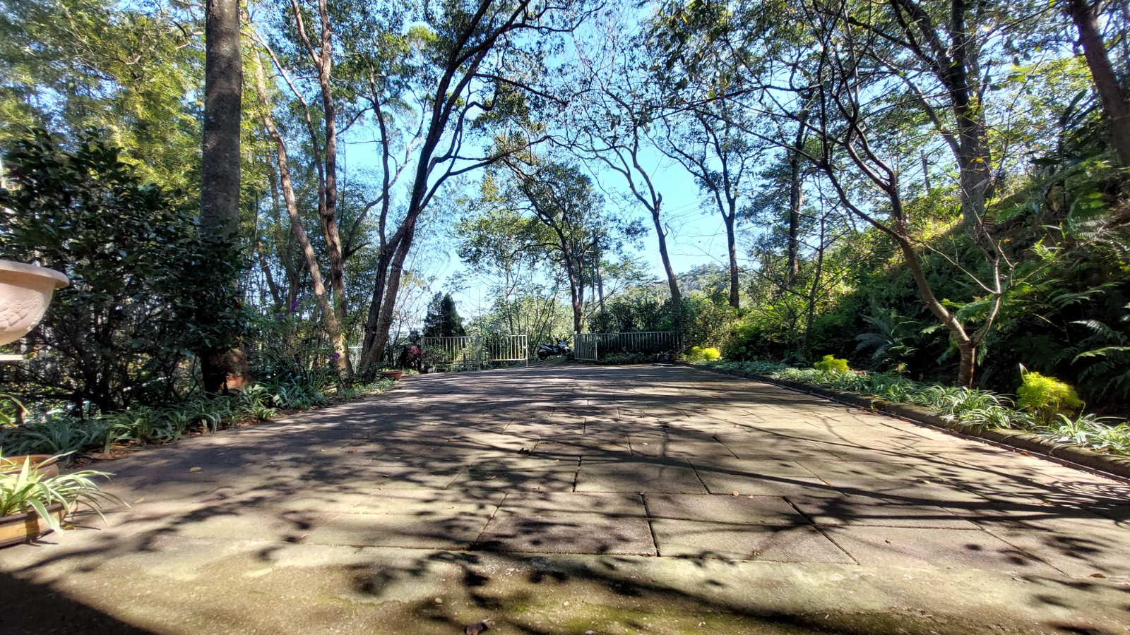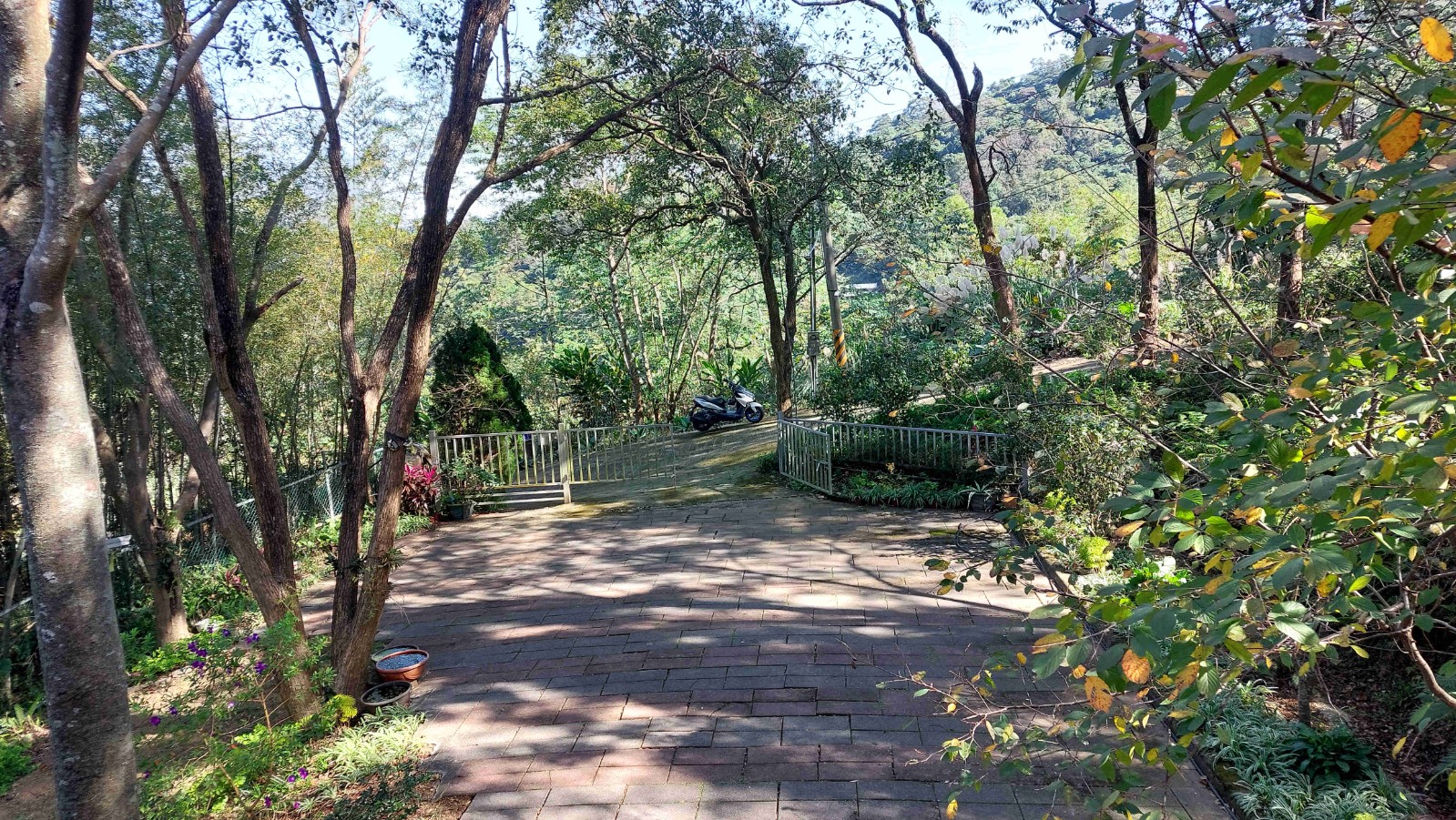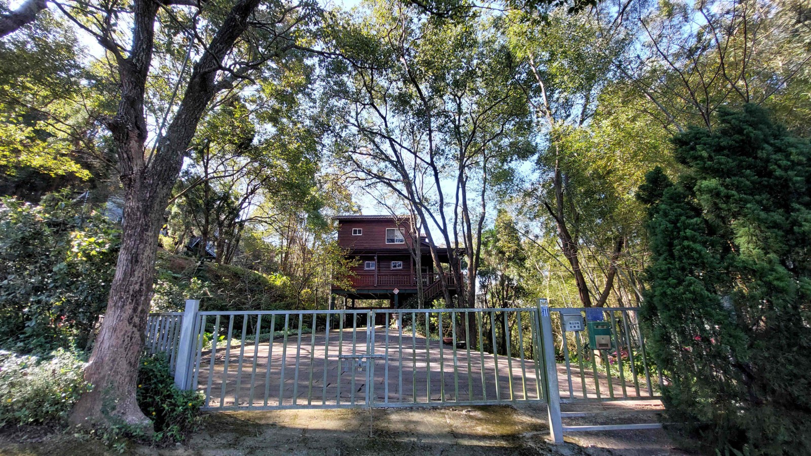 2.農地設有獨立出入口,並以手動大門清楚區隔內外空間;入園後為寬敞庭院,地面全面鋪設石板,即使雨天亦不泥濘,行走、停車皆十分便利