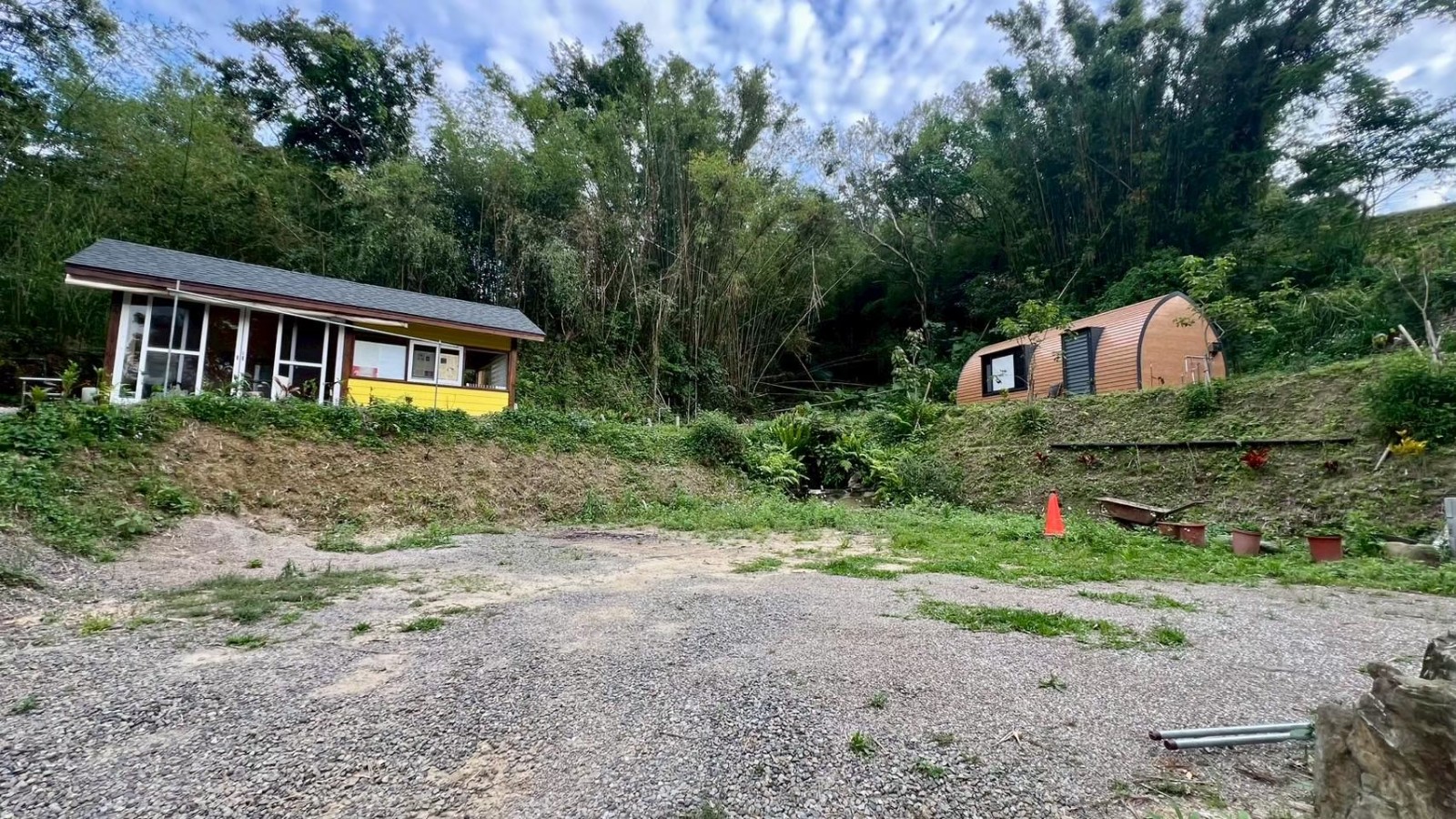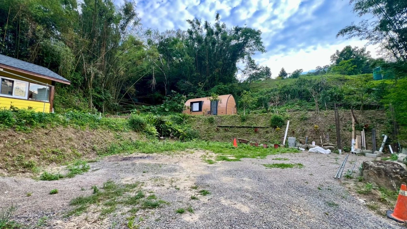 4.較高平台設有兩棟休閒小屋(無儲存登記),可作為週末度假、接待親友、簡易居住之用。平台上另有一口生態池,增添自然氣息,是親近自然、享受慢活的絕佳空間。