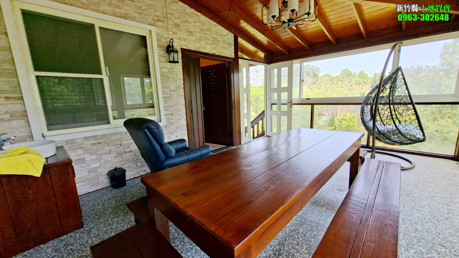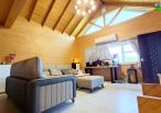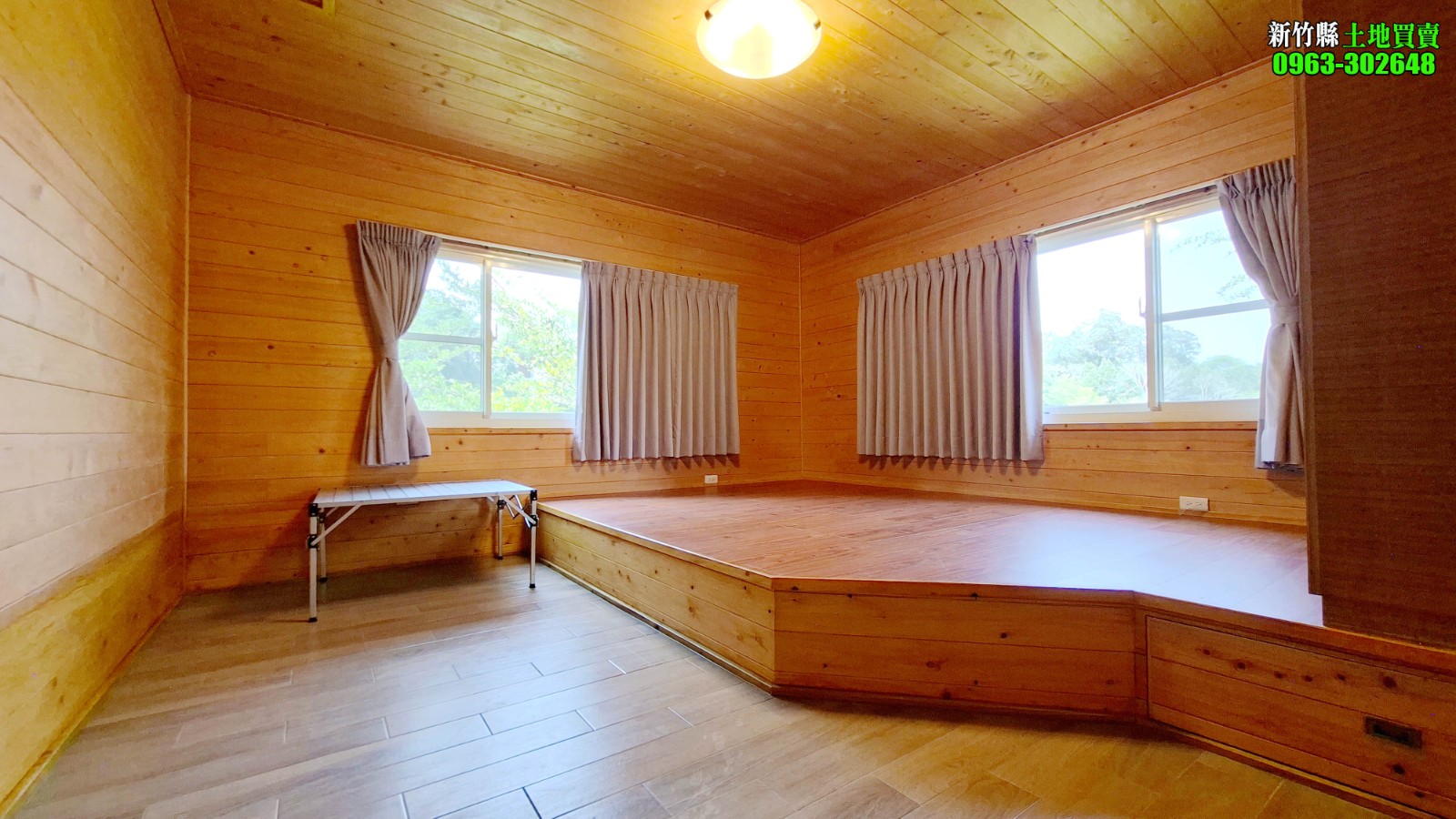 3.現況擁有一棟3層樓景觀木屋(無儲存登記),屋齡約6年多,座向為座西北朝東南,採光通風條件優異。室內含露臺使用空間約 55坪、外牆採用馬克板,耐候耐用內裝為日本檜木板材,質感溫潤、自然舒適、整體呈現出質樸典雅的山居風格,空間方正寬敞,居住感極佳。
