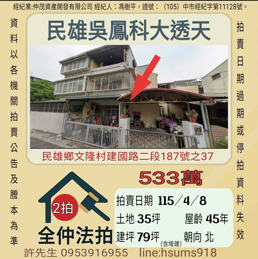 經紀人:馮樹平,證號:(105)中市經紀字第11128號。