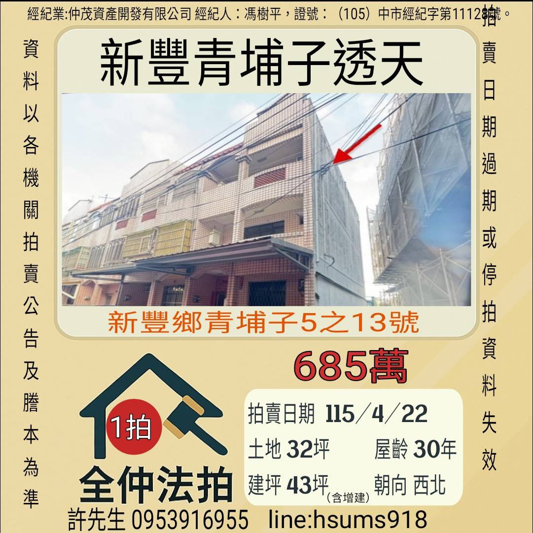 經紀人:馮樹平,證號:( 105)中市經紀字第 01728 號。