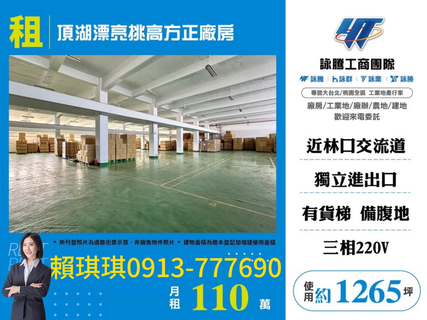 琪琪🐝推~近林口交流道頂湖漂亮挑高方正廠房