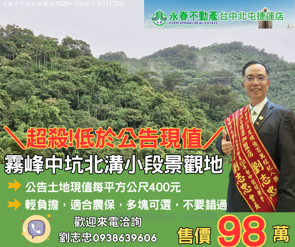 低於公告土地現值霧峰中坑北溝小段農保地景觀地81台中買屋賣房