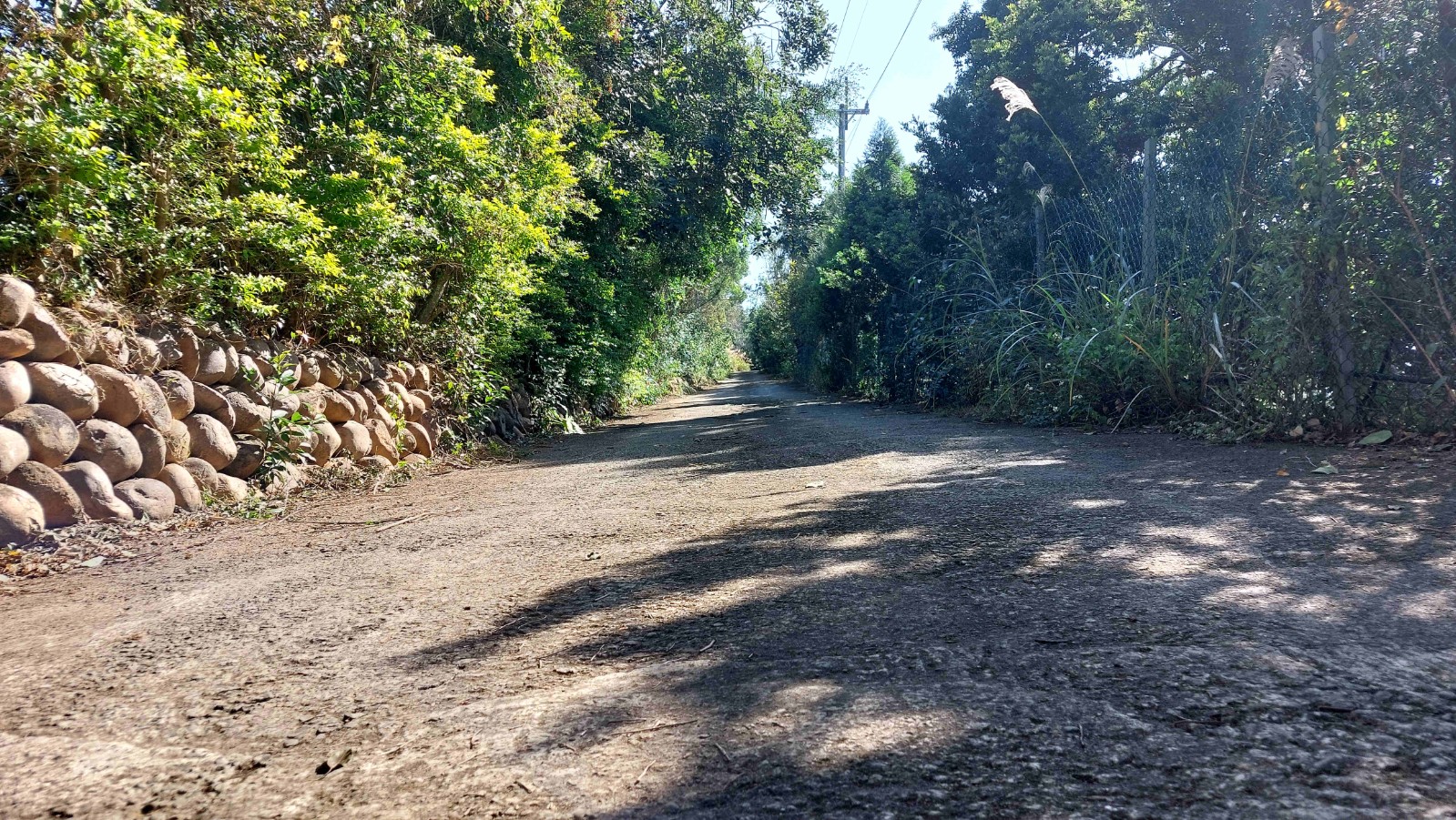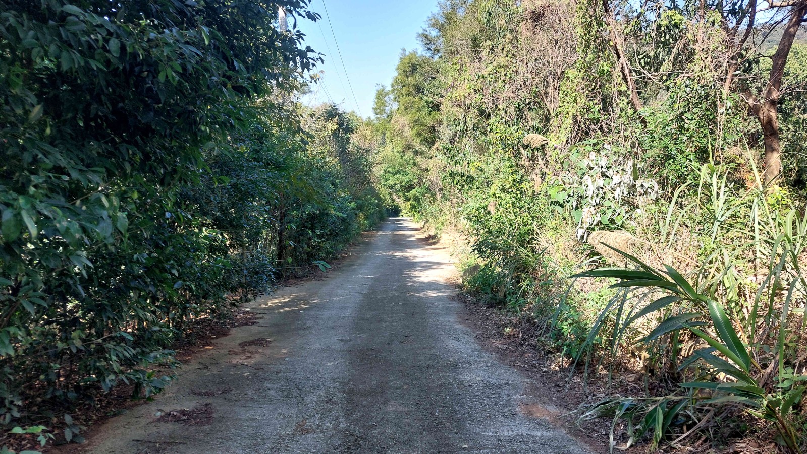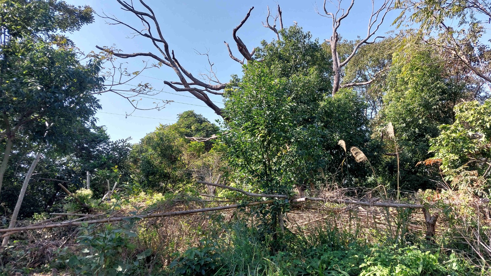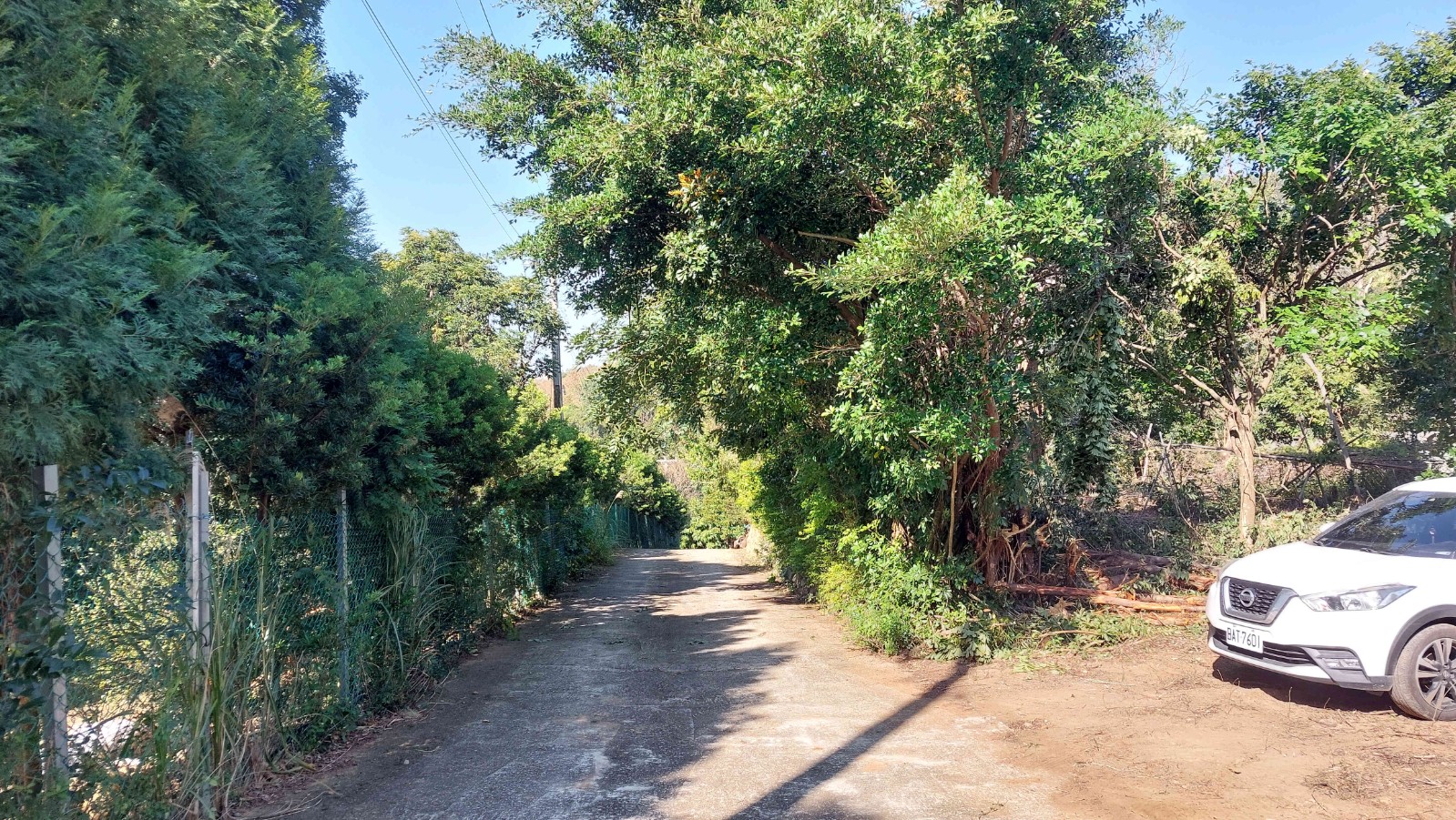 3.農地前方臨園區內道路,出入方便;後方銜接鄰地菜園,環境單純自然,四周界線還算清楚、一群不知名的小鳥,同時停棲在樹梢與電線上,時而低鳴、時而振翅,為靜謐的土地添上一抹生動。
