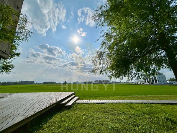 青翠落雨松層層綠稻浪,和風金波浪稻穗壓彎腰