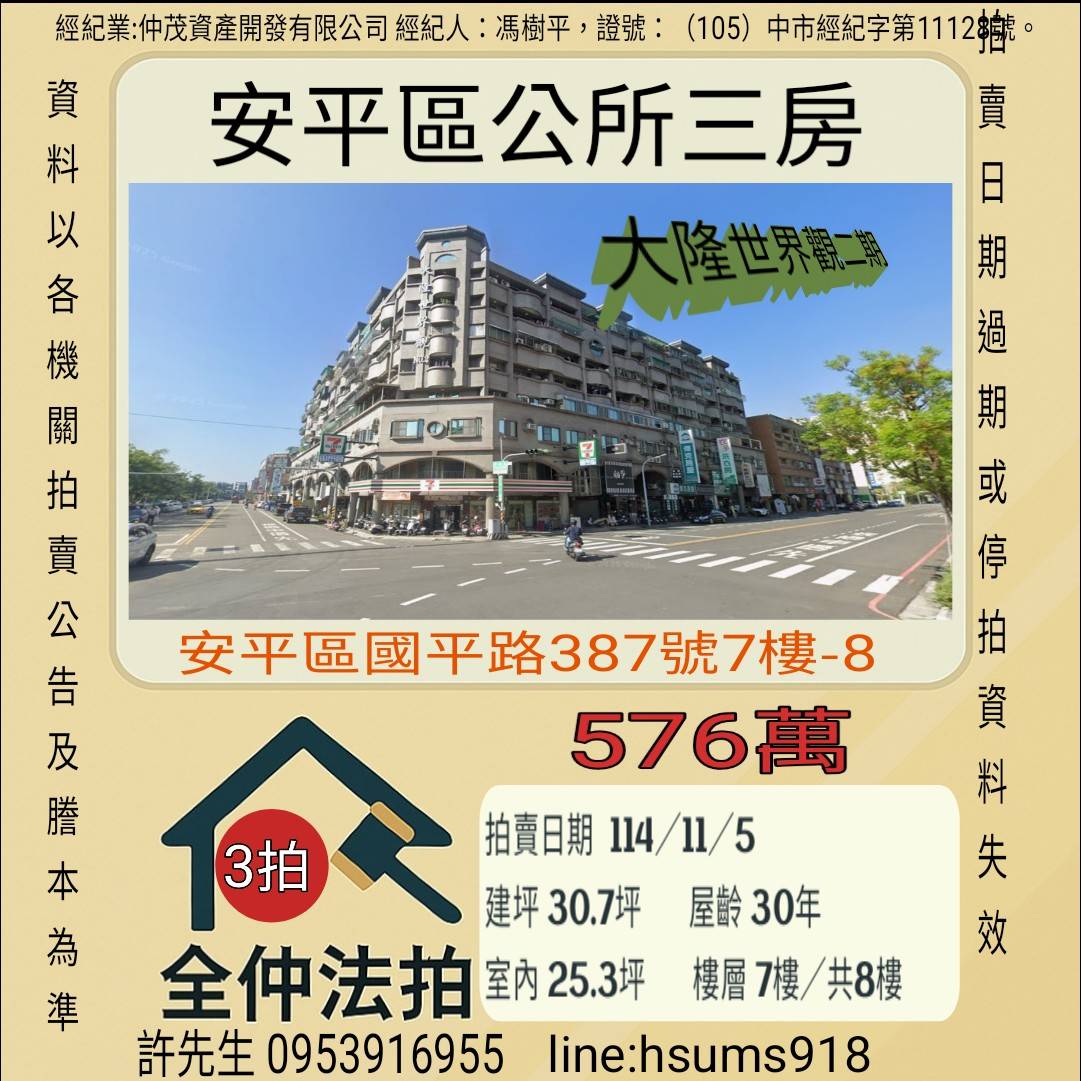 地址 安平區國平路387號7樓-8