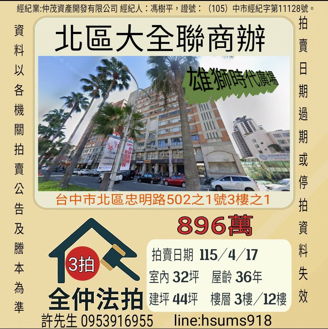 經紀人:馮樹平,證號:(105)中市經紀字第11128號。