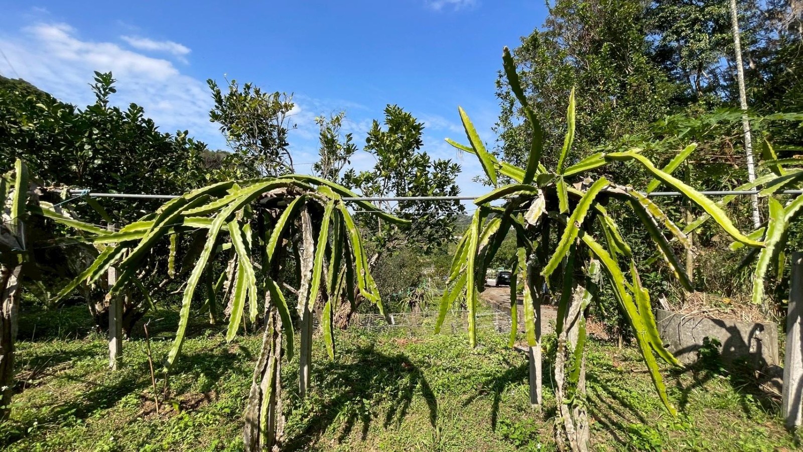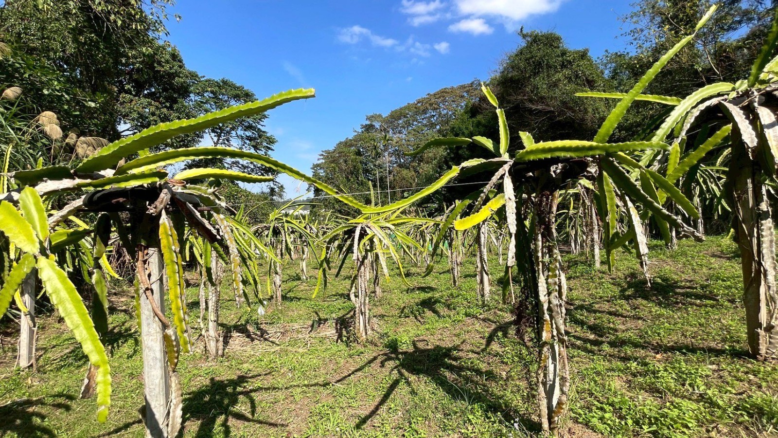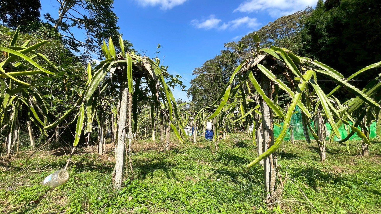 2.農地海拔約85公尺,地勢平坦、視野開闊,整體環境舒適宜人;現況主要農作以火龍果為主,年產量約200~300台斤,另輔以少量芭樂、香蕉、柚子、木瓜、薑黃及葛鬱金等作物,作物種類多元,具備良好的耕作基礎與發展彈性