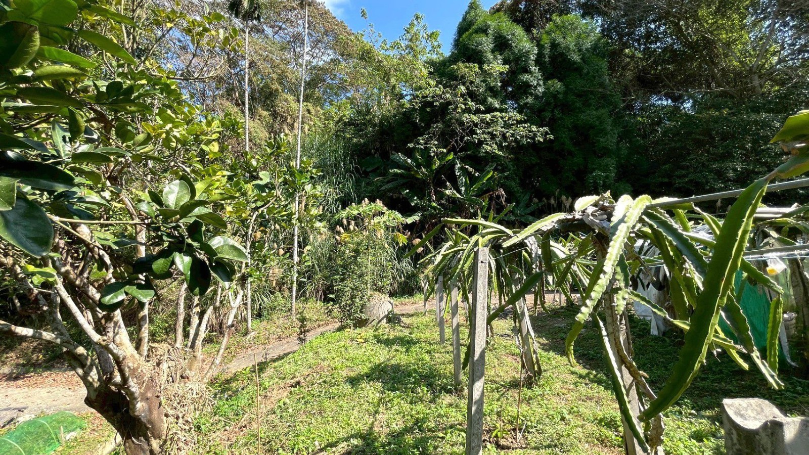 4.土地前方鄰地種植柑橘,四周環繞樹林,整體環境自然清幽;現況以火龍果種植區域作為土地參考範圍,實際範圍仍以正式鑑界結果為準,產權清楚、界線明確。