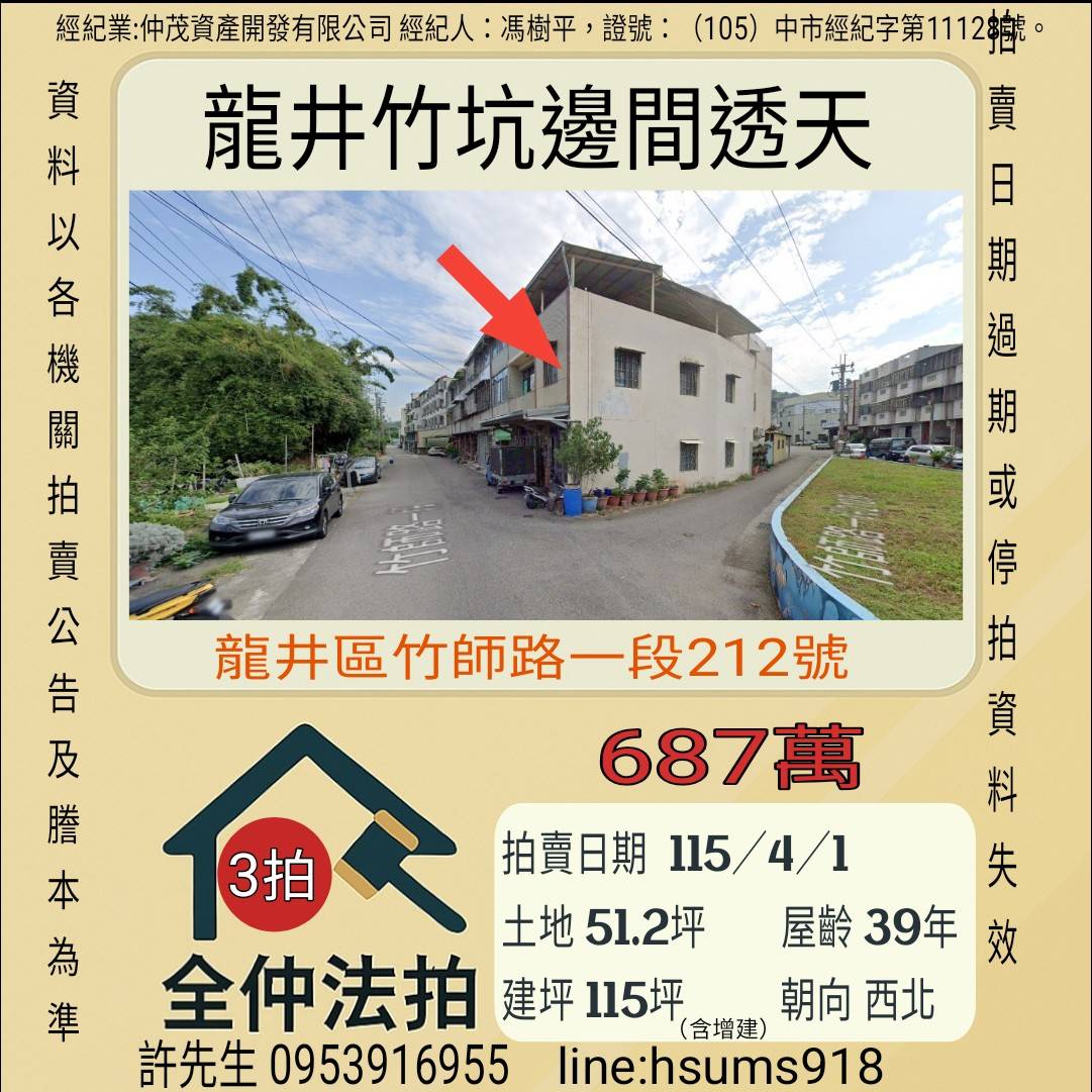 經紀人:馮樹平,證號:(105)中市經紀字第11128號。